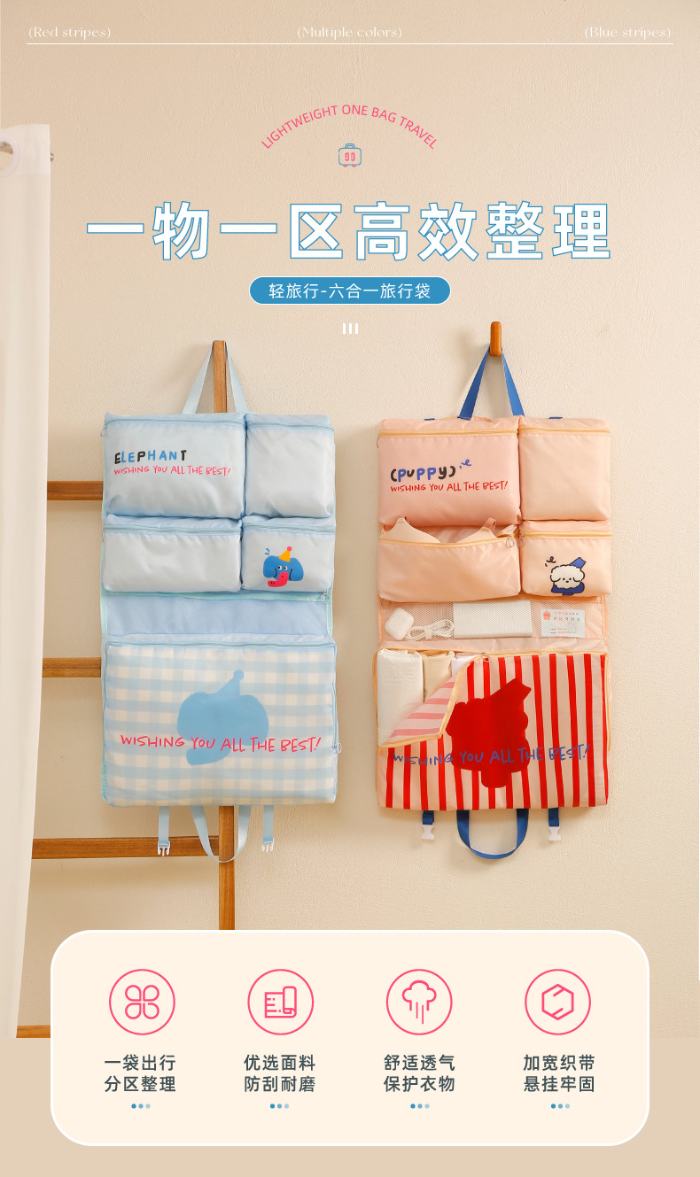 여행 보관 가방 휴대용 수하물 6 대 1 적합 가방 접이식 교수형 옷 속옷 팬티 보관 가방