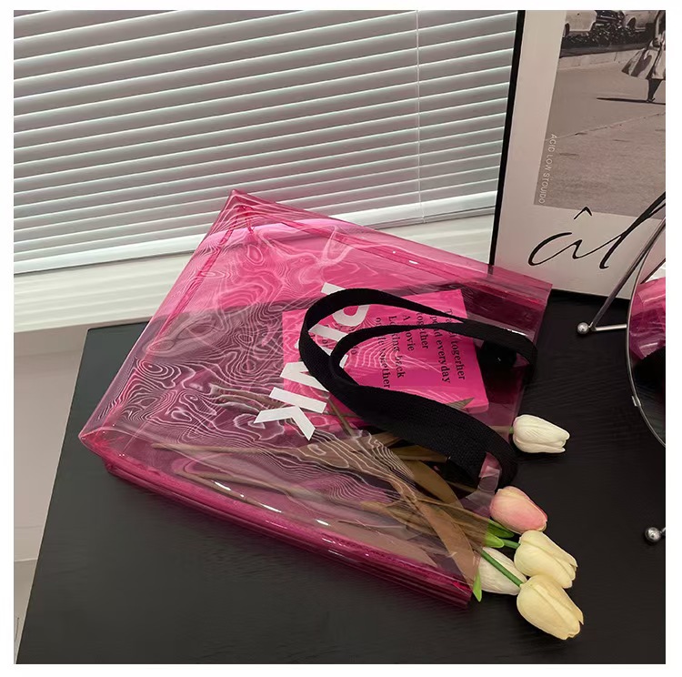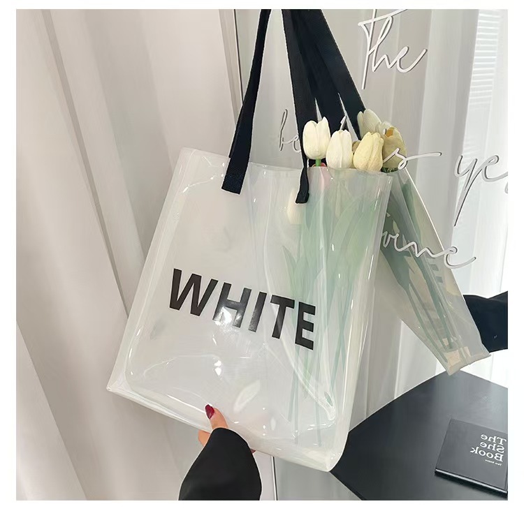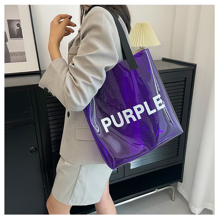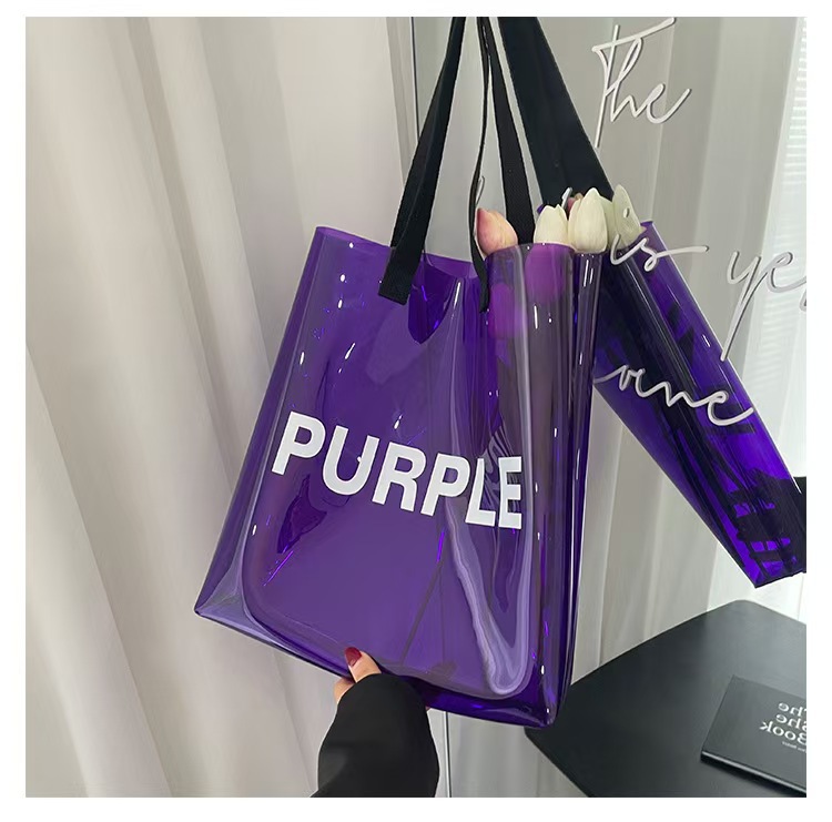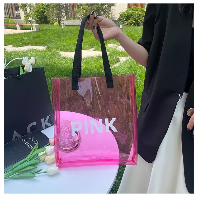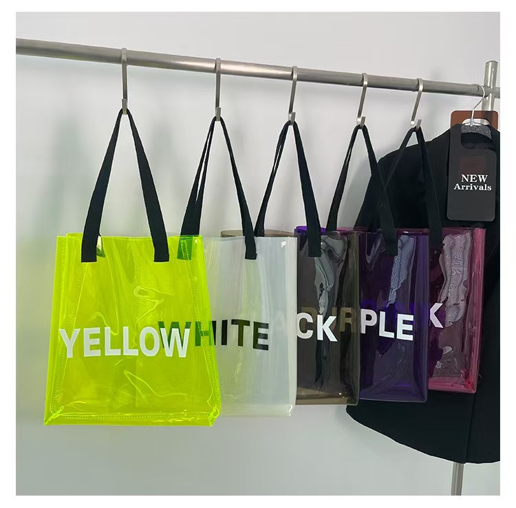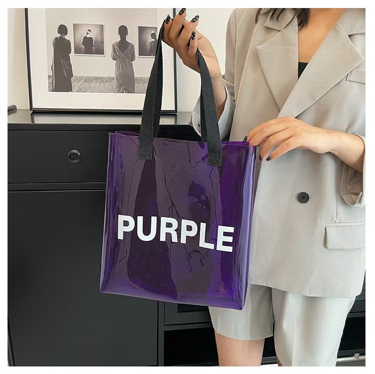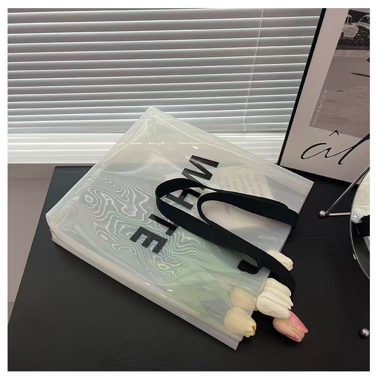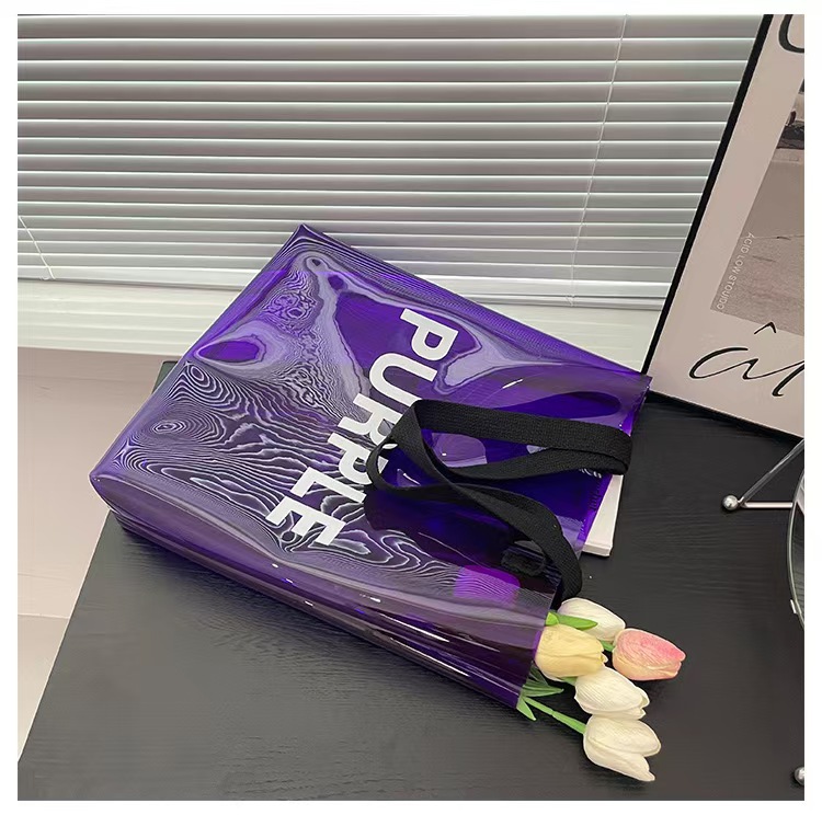 젤리 가방 사용자 정의 로고 다채로운 레이저 가방 PVC 투명 핸드백 플라스틱 선물 가방 포장 방수 가방스토어 가기