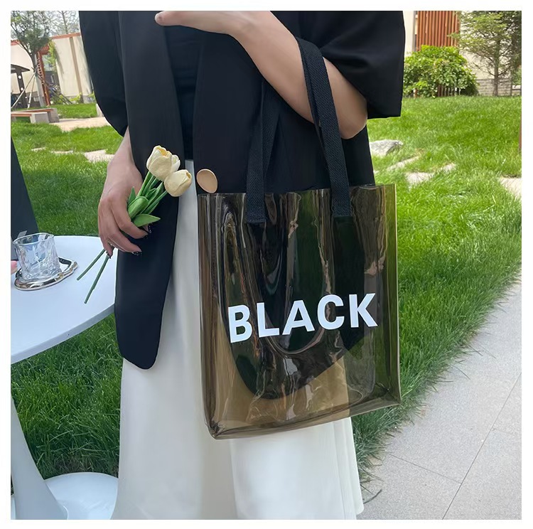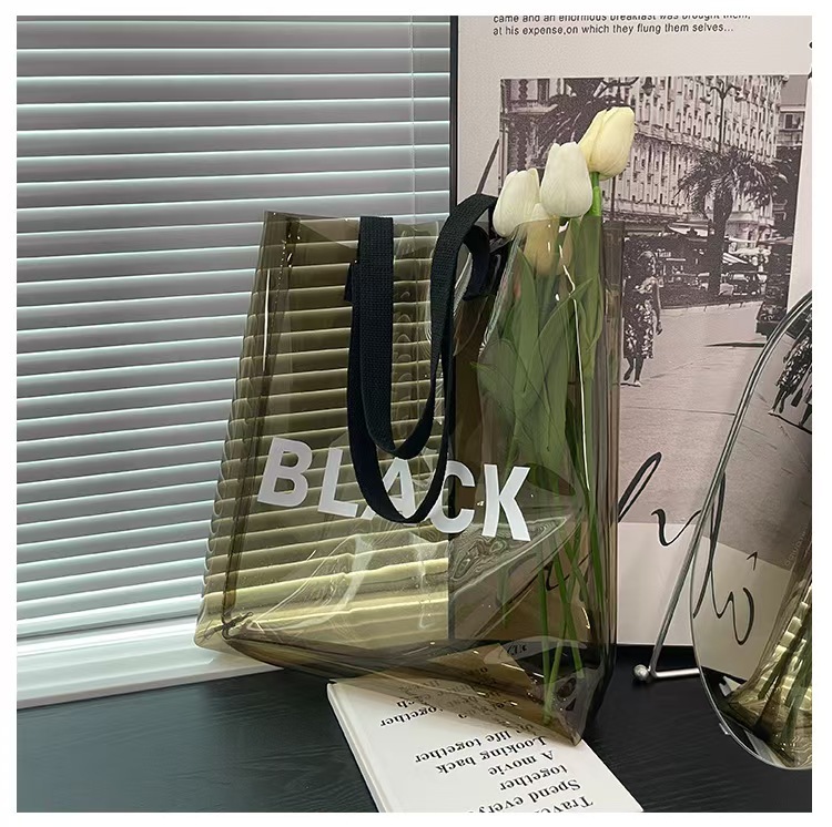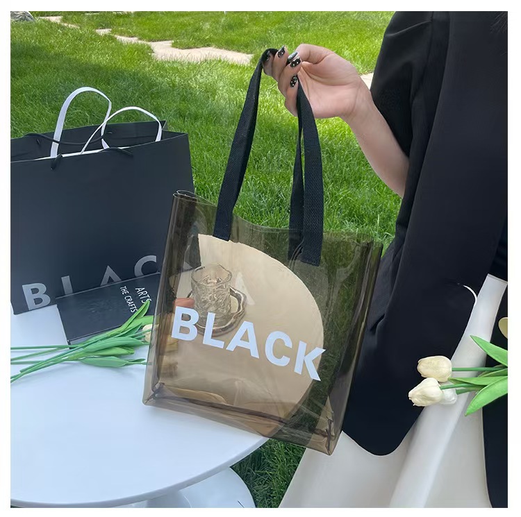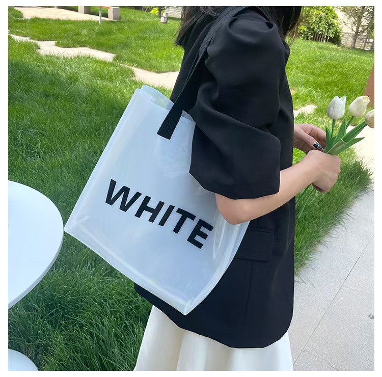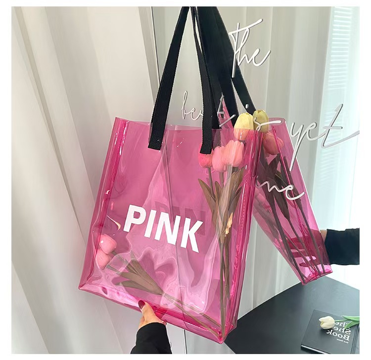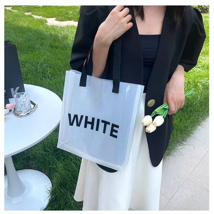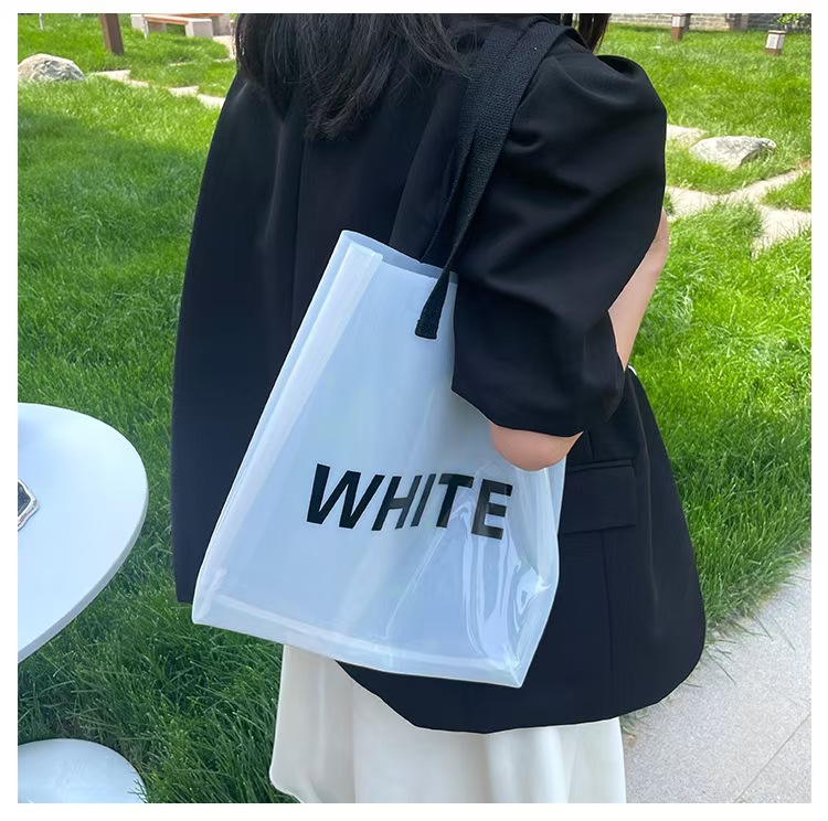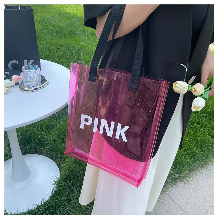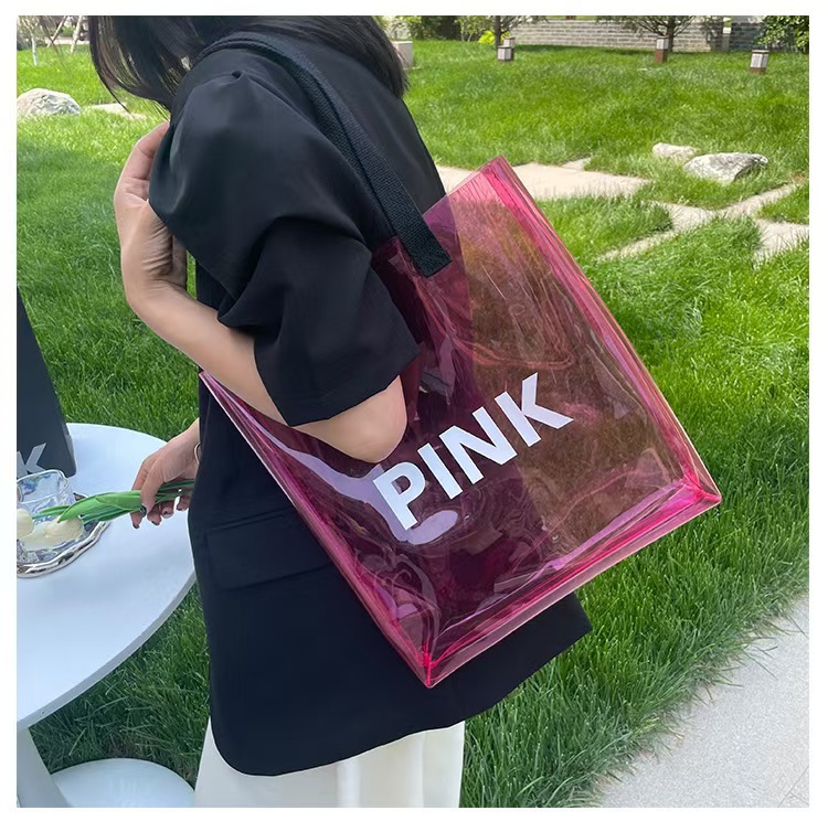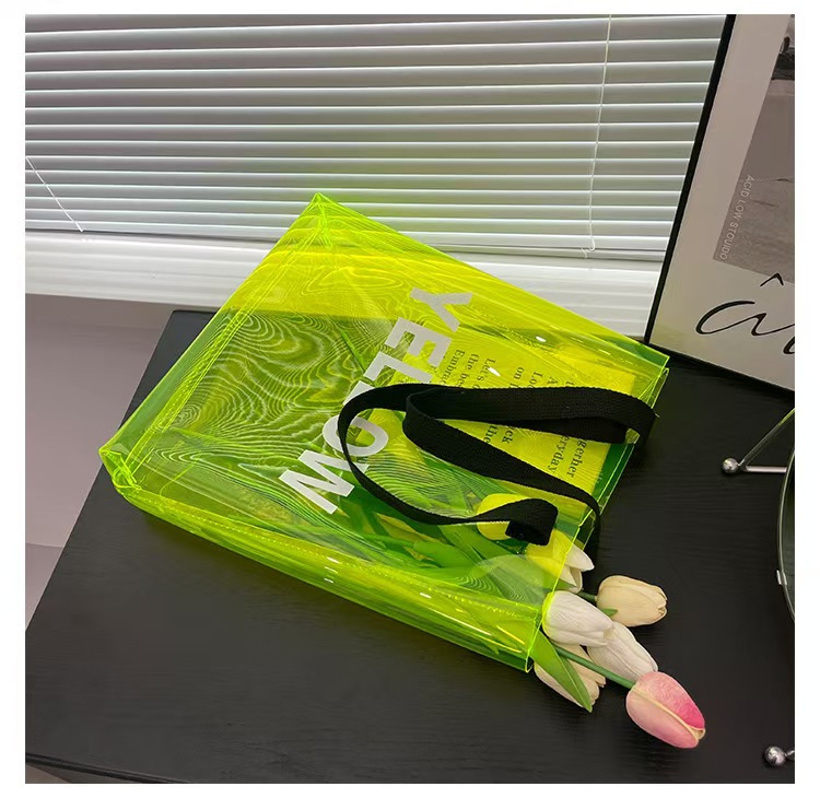 젤리 가방 사용자 정의 로고 다채로운 레이저 가방 PVC 투명 핸드백 플라스틱 선물 가방 포장 방수 가방스토어 가기