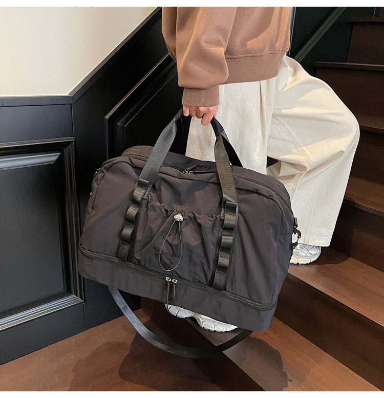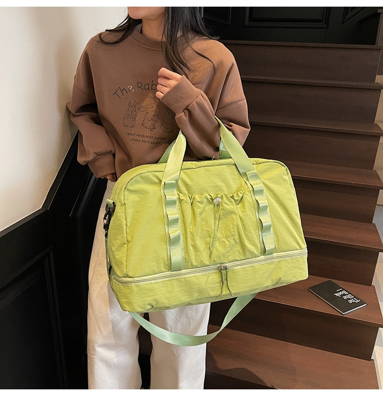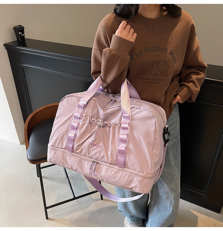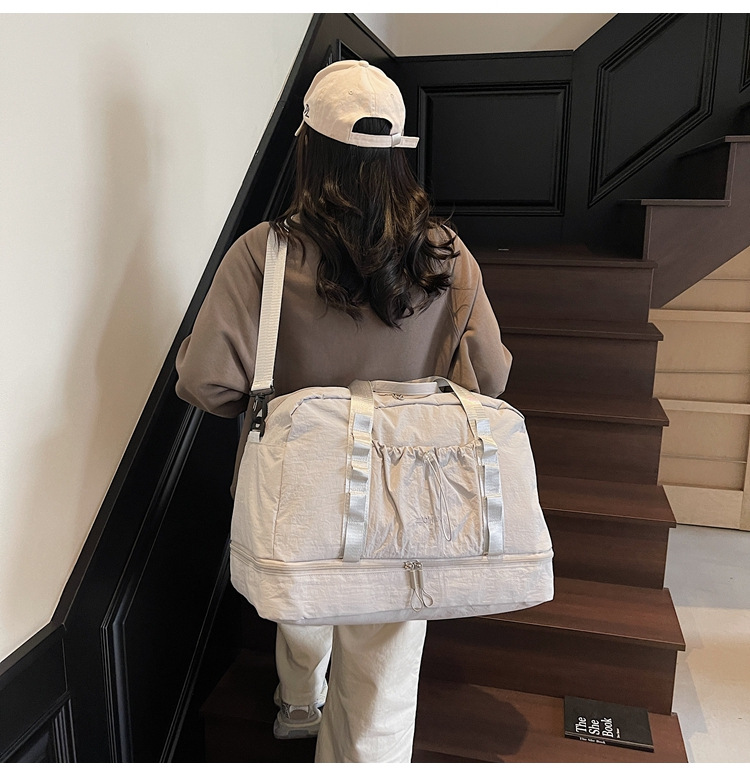 신발 수납공간이 있는 새로운 스타일의 수하물 가방, 가벼운 스포츠 요가 가방, 건식 및 습식 분리 주름 요소, 가정에서 여행하는 여성용 가방