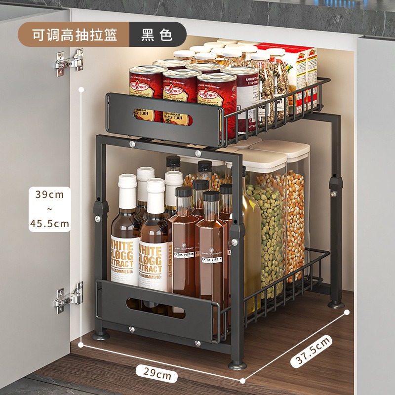 국경 이중 레이어 낮은 싱크 스토리지 랙 캐비닛 풀아웃 텔레스코픽 스토리지 랙 다기능 잡화 조미료 스토리지 랙