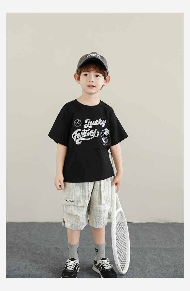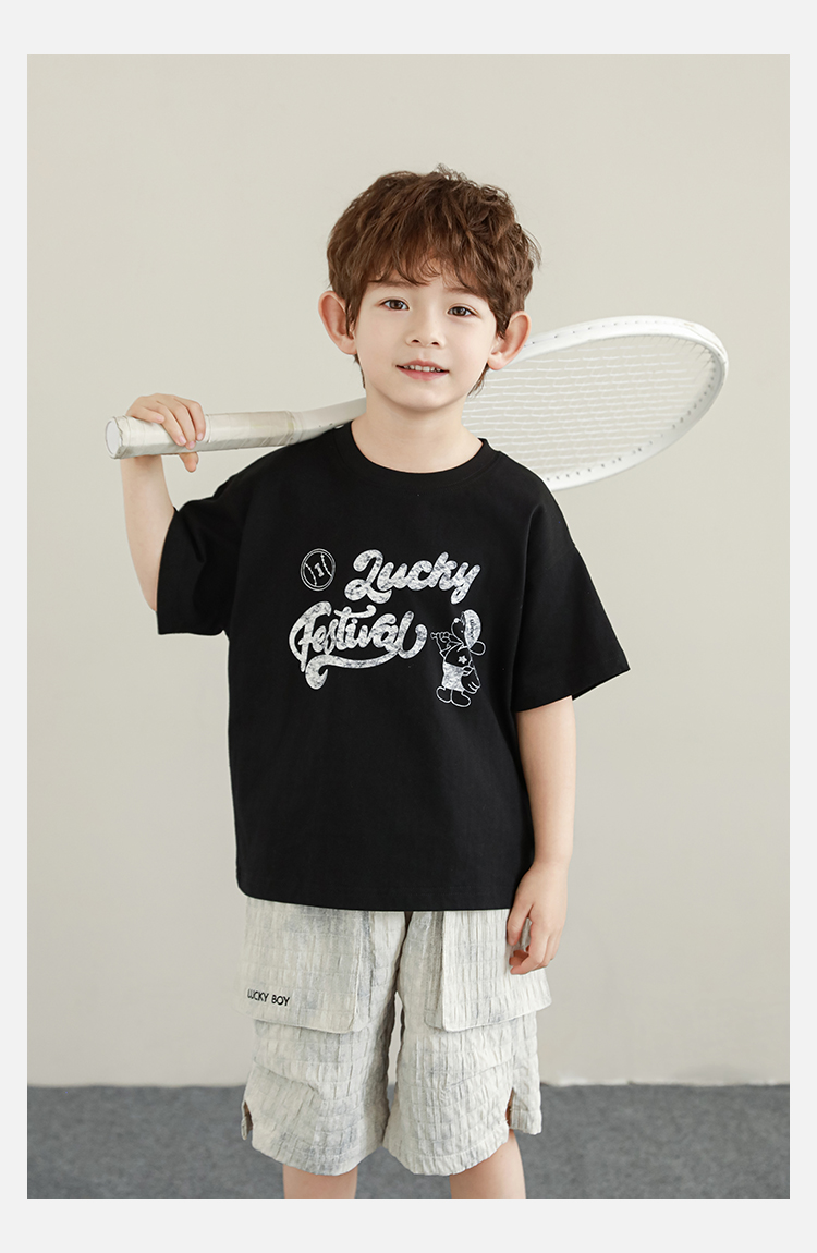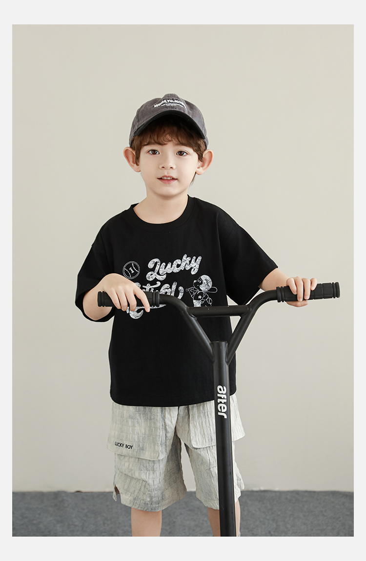Wulibuyi 소년 반팔 티셔츠 아동 여름 쿨 탑 2025 새로운 낙서 소년 루즈 탑스토어 가기