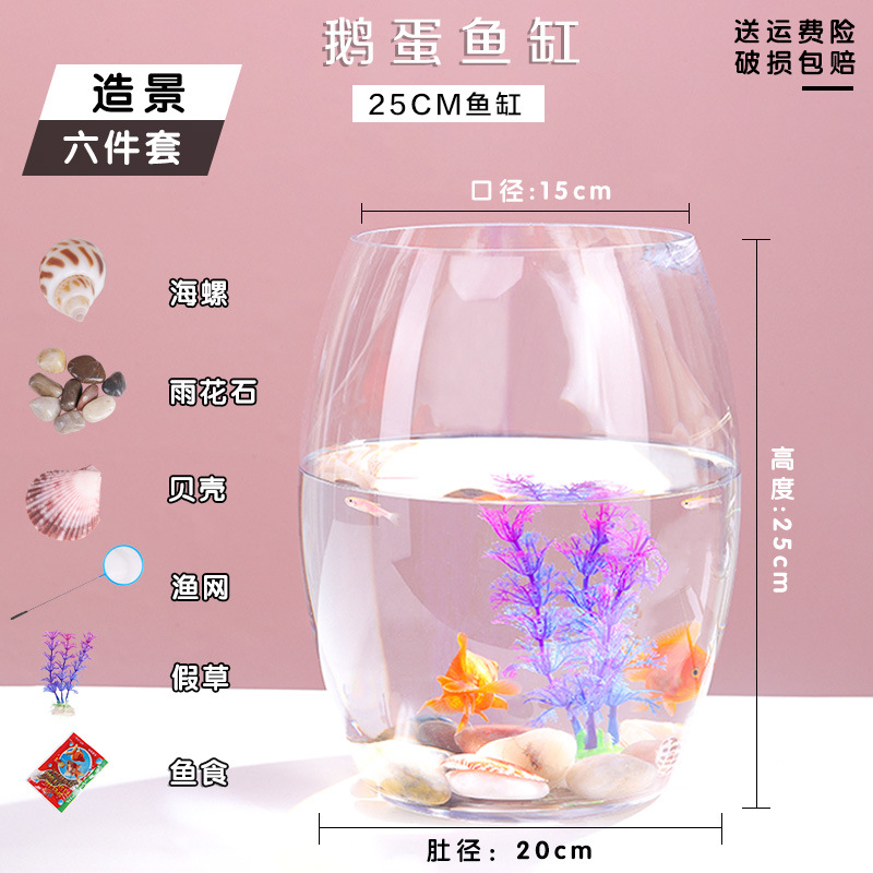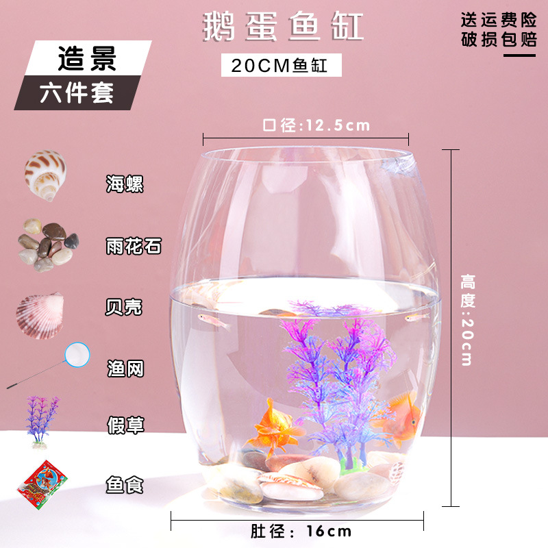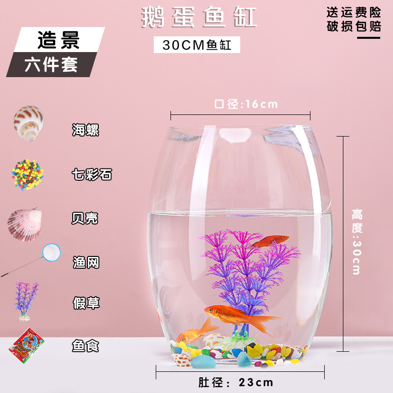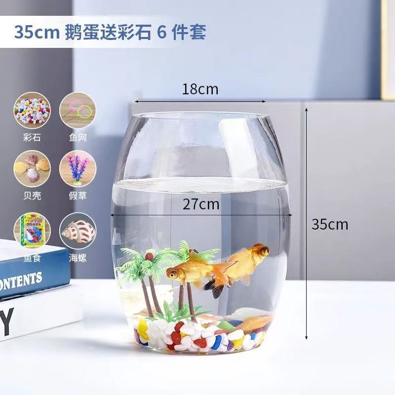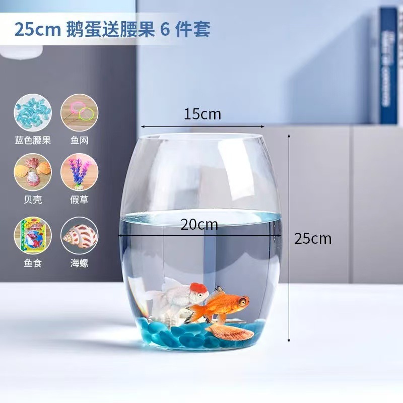 투명 유리 거위 계란 수조 책상 수경 원형 거실 금붕어 작은 거북이 미니 데스크탑 작은 수조