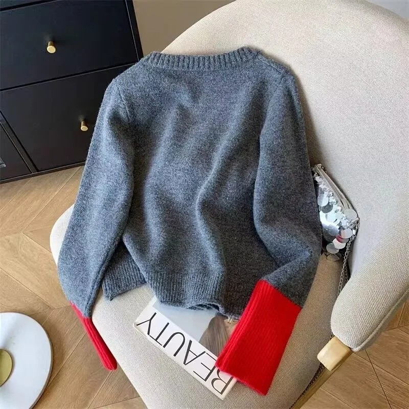 여성을위한 하이 엔드 슈퍼 멋진 대비 색 니트 카디건 재킷 겨울 부드럽고 밀랍 같은 독특한 스웨터 유행 공장 매장 도매 여성