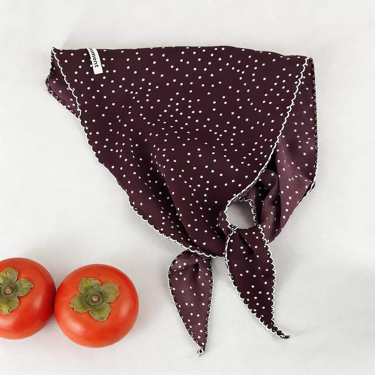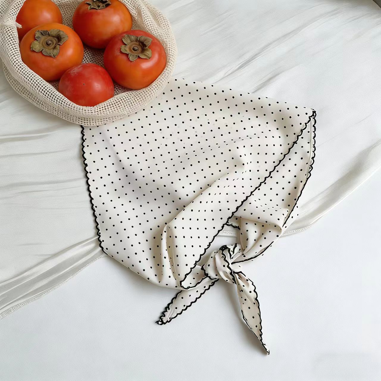 한국 스타일 봄 여름 얇은 곱슬무늬 물방울 무늬 실크 스카프 여성스러운 분위기의 삼각 스카프 패셔너블한 장식용 스카프 다용도
