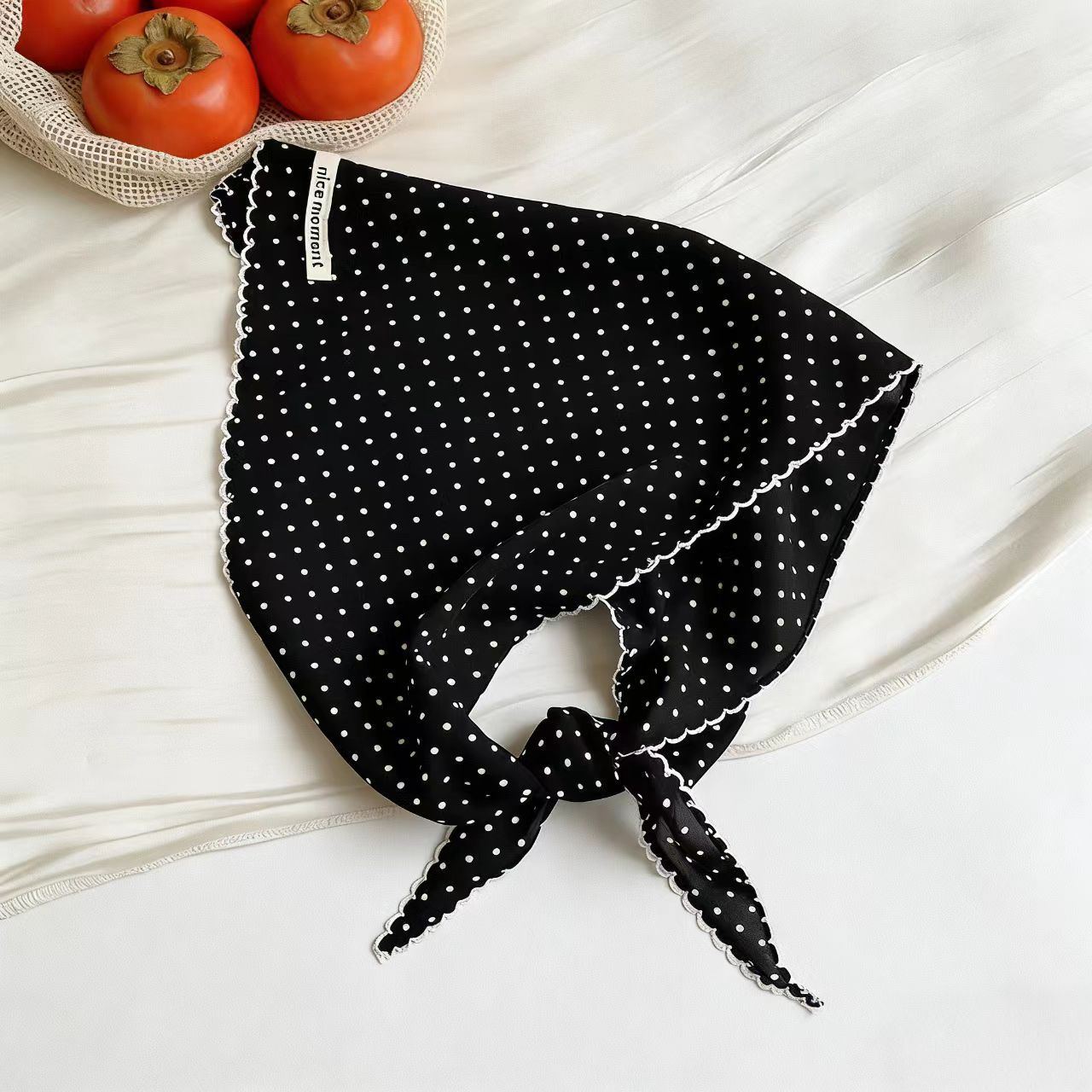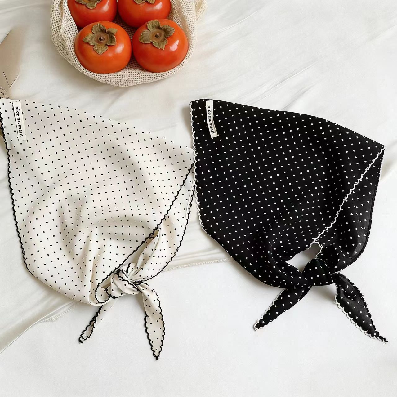 한국 스타일 봄 여름 얇은 곱슬무늬 물방울 무늬 실크 스카프 여성스러운 분위기의 삼각 스카프 패셔너블한 장식용 스카프 다용도스토어 가기