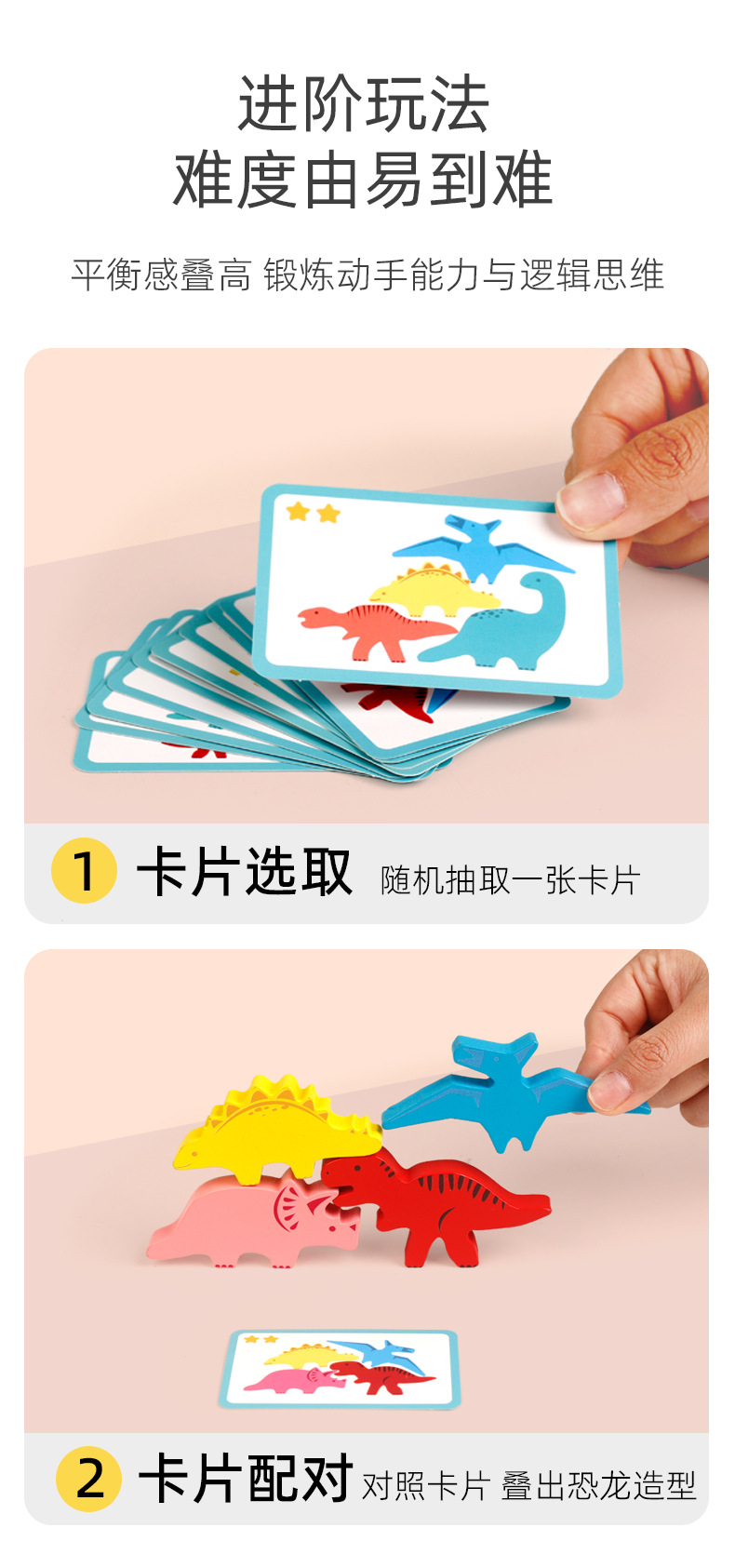 새로운 어린이의 재미있는 공룡 스태킹 장난감 컬러 카드 패턴 인식 국경 간 아기 스태킹 게임