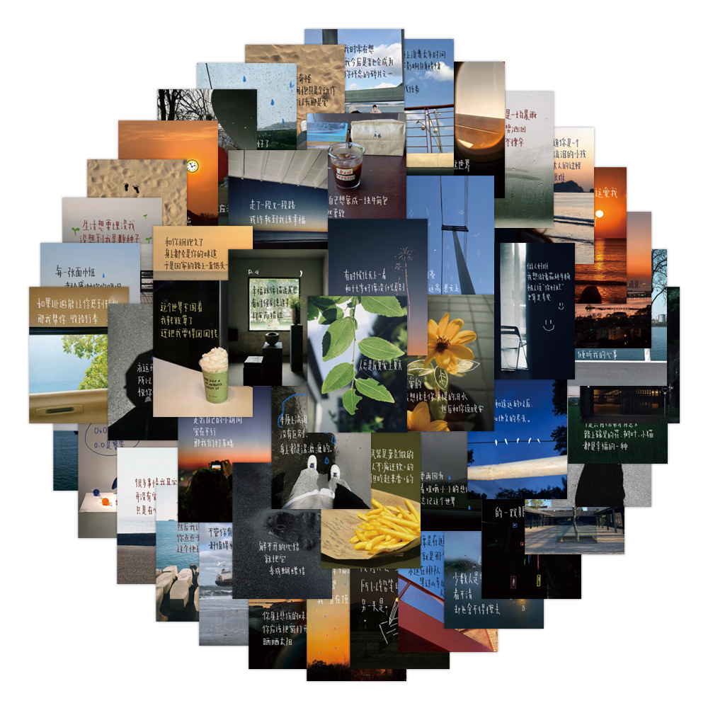 손으로 쓴 일상 배경 카피라이팅 스티커 100장, 컷팅 없음, 스타일리시한 풍경 휴대폰 스티커, 방수스토어 가기