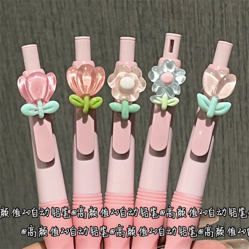 핑크 튤립 2.0 액티브 연필 포지티브 자세 높은 색 가치 꽃 교정 자세를 유지하는 자세 바람 소녀의 심장 자동 연필스토어 가기