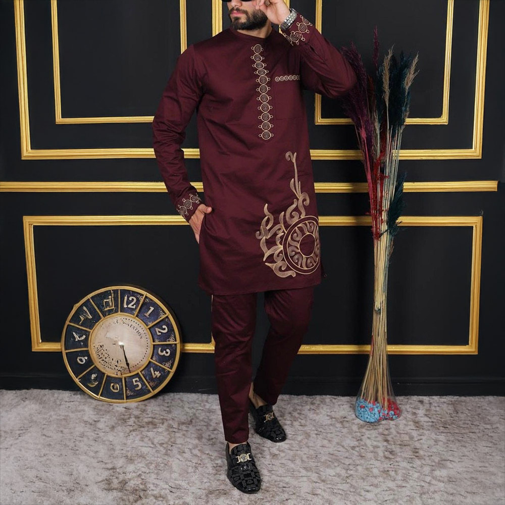 2025 국경 핫 세일 새로운 아프리카 민족 스타일 남성 셔츠 바지 투피스 세트 남성 캐주얼 세트