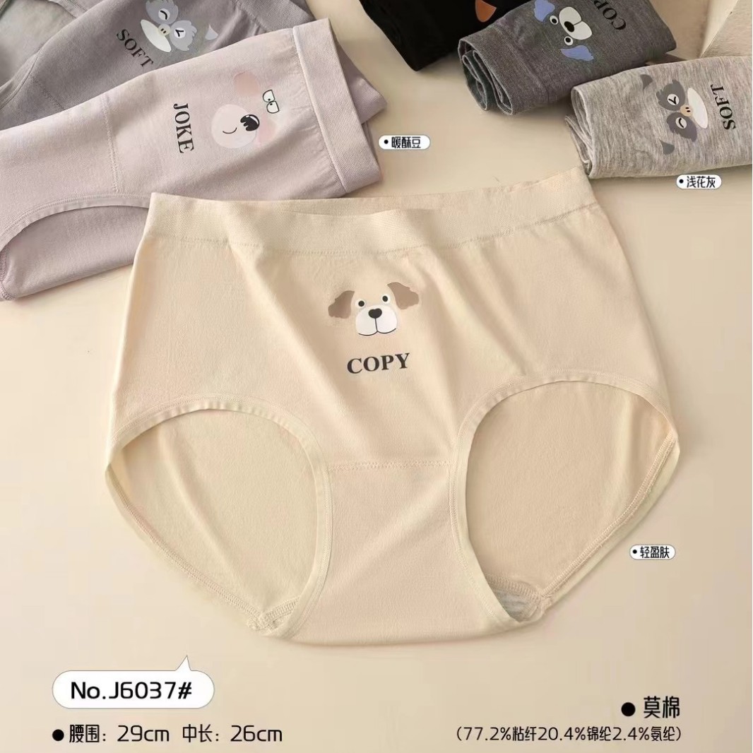 Favorite Temptation 6037 여성용 이음매없는 메일라드 컬러 만화 강아지 프린트 팬티 미드 웨이스트 팬티