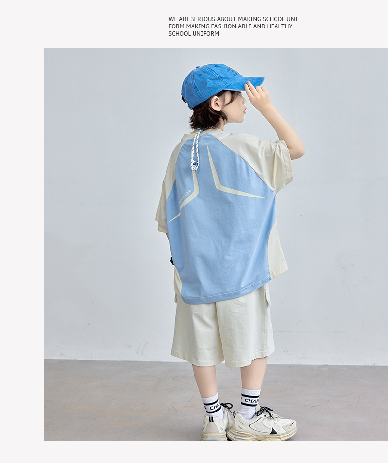 남자들의 여름 원피스 세트 2025 새로운 도착 CUHK 어린이 원피스 유행 얇은 여름 반팔 소년의 2 피스 패셔너블 쿨 세트스토어 가기