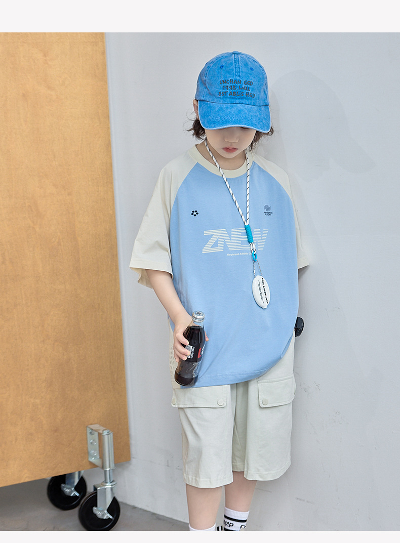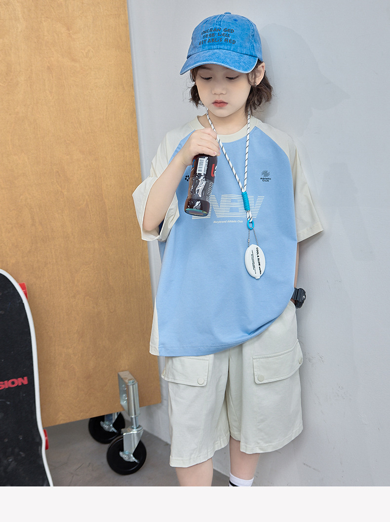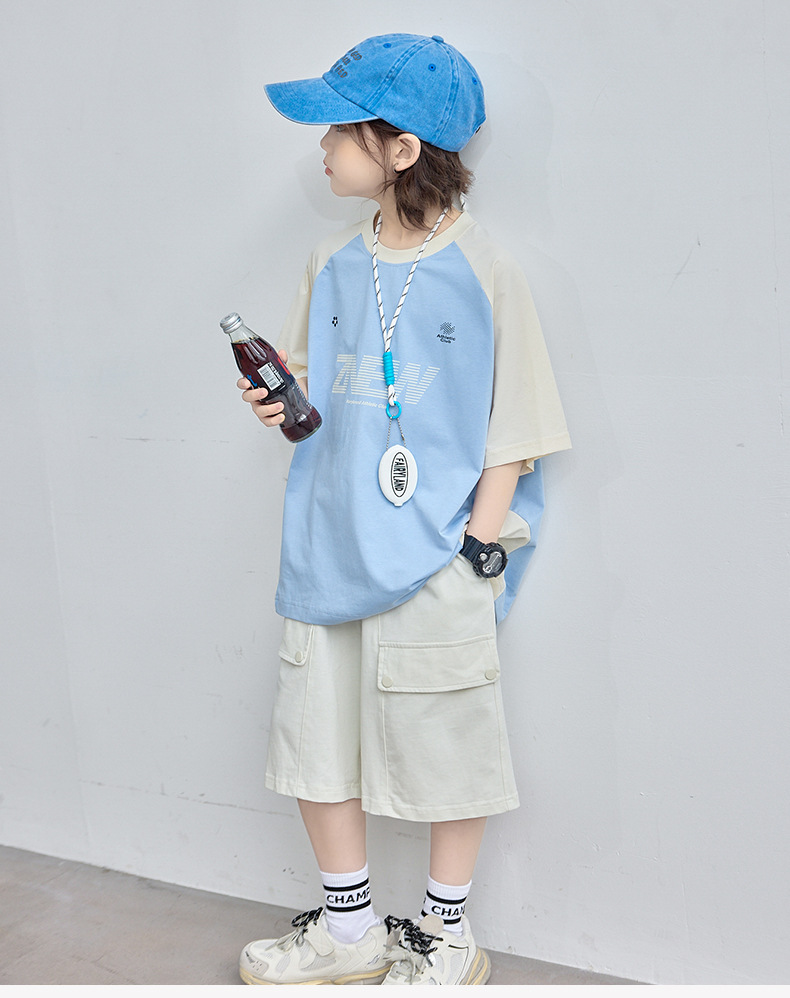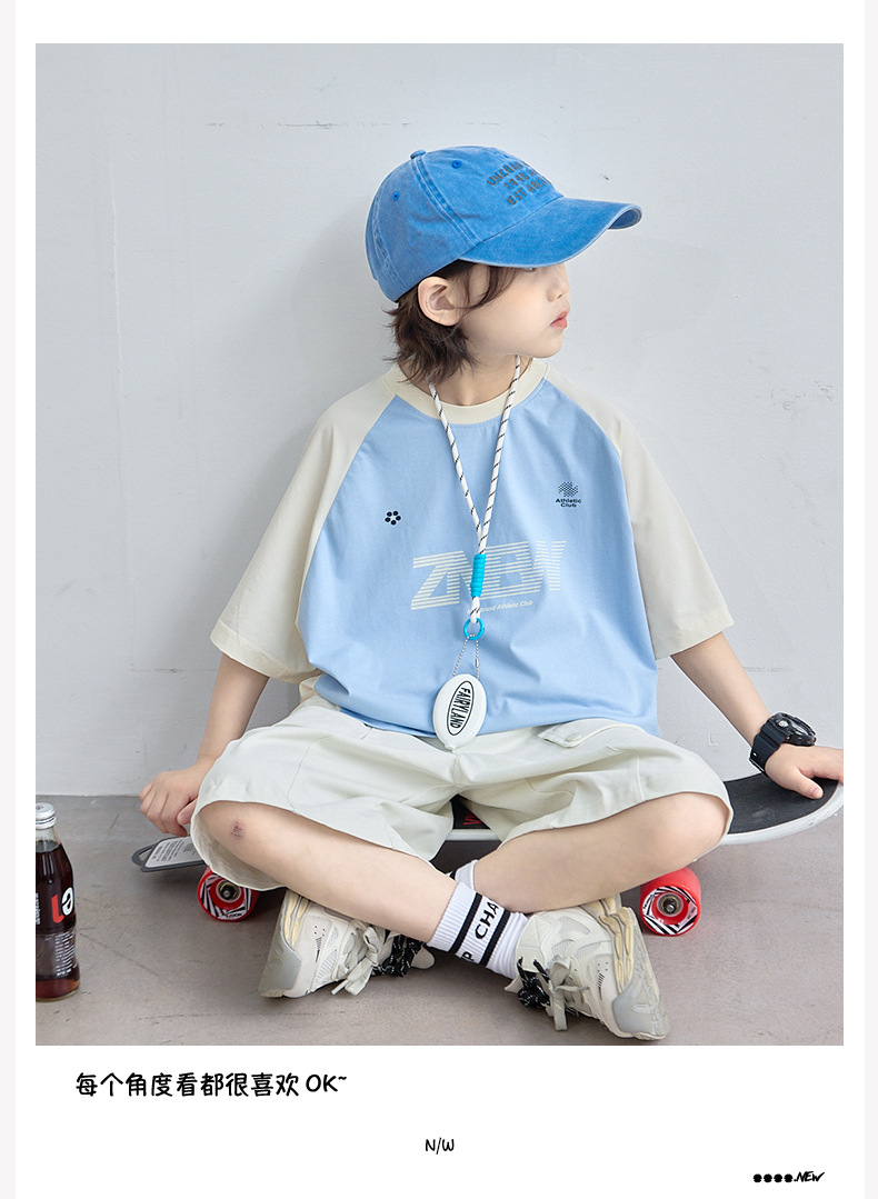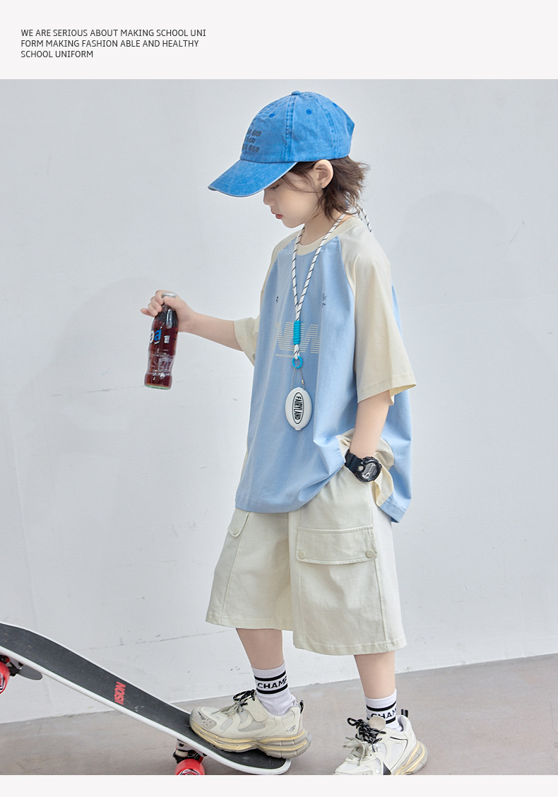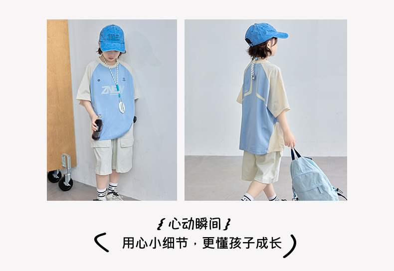 남자들의 여름 원피스 세트 2025 새로운 도착 CUHK 어린이 원피스 유행 얇은 여름 반팔 소년의 2 피스 패셔너블 쿨 세트