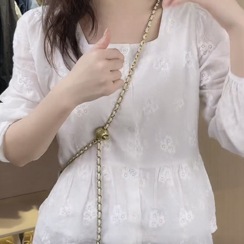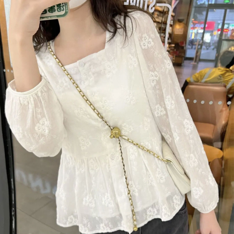 긴 소매 자수 느슨한 배꼽 커버 레이스 탑 허리 쉬폰 셔츠 여성 디자인 센스 인형 셔츠스토어 가기