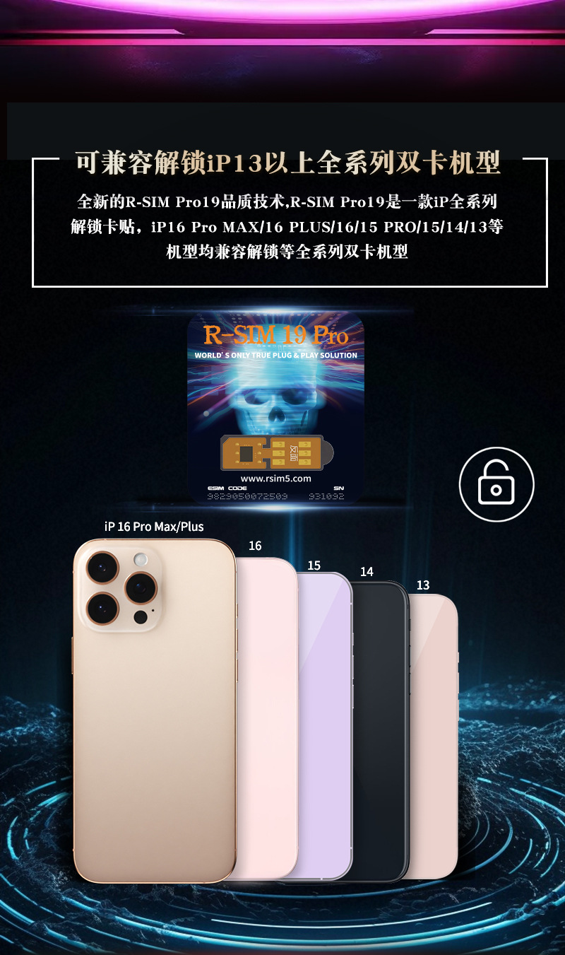 R-SIM19 프로 완전 자동 듀얼 카드 듀얼 스테이 애플 iPhone13-16 시리즈 카드 스티커 잠금 해제