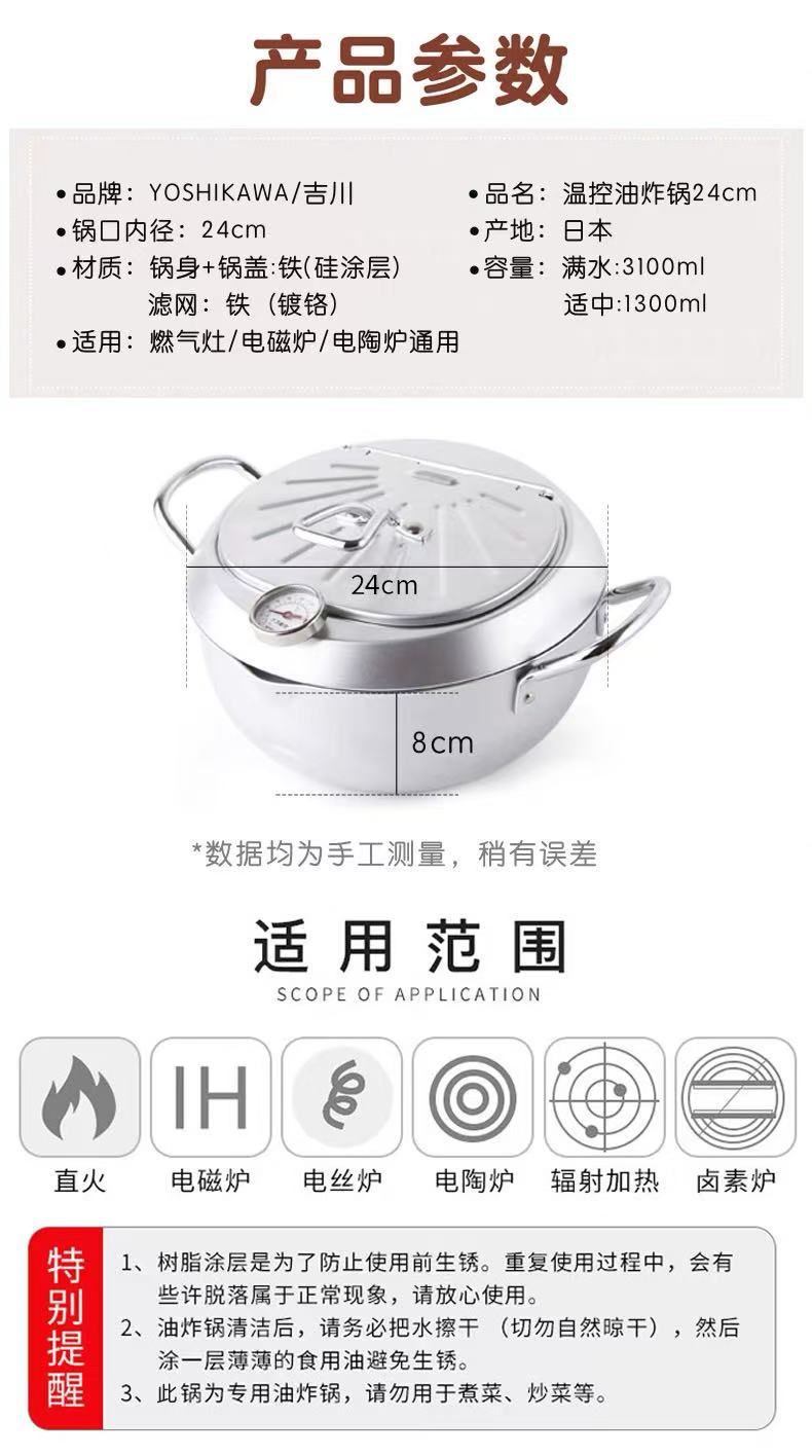 YOSHIKAWA Yoshikawa 수입 튀김 냄비 튀김 봄 롤 튀김 냄비 유도 쿠커 가스 유니버설 새우 튀김 냄비스토어 가기
