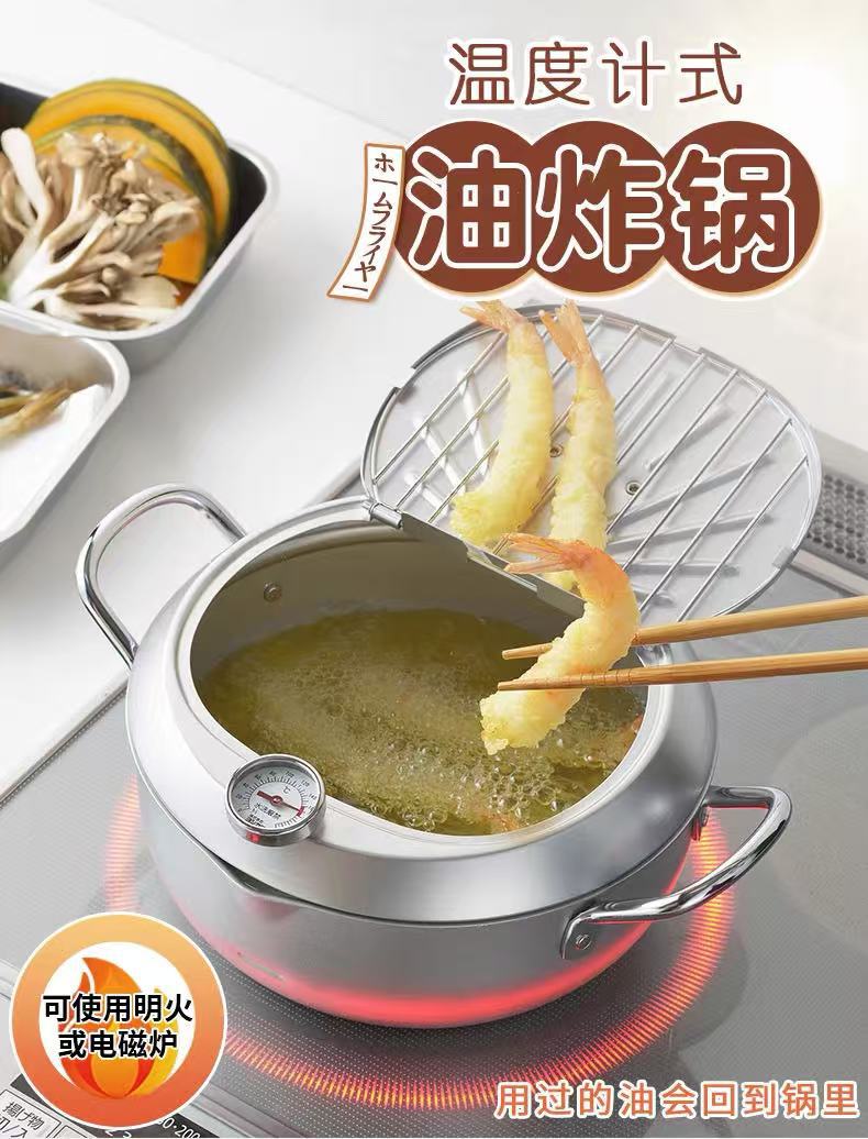 YOSHIKAWA Yoshikawa 수입 튀김 냄비 튀김 봄 롤 튀김 냄비 유도 쿠커 가스 유니버설 새우 튀김 냄비
