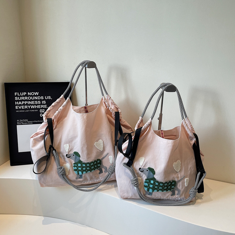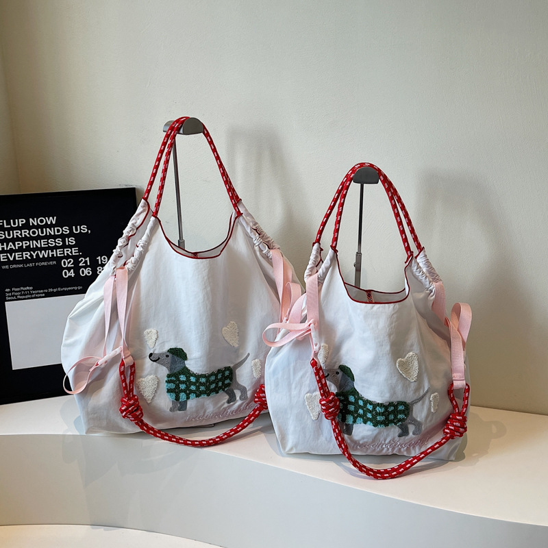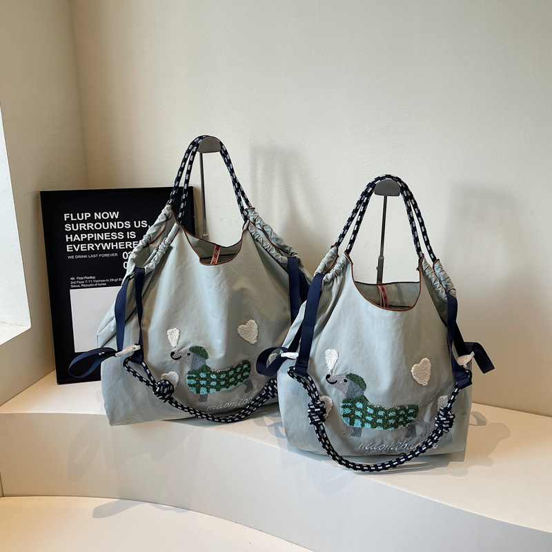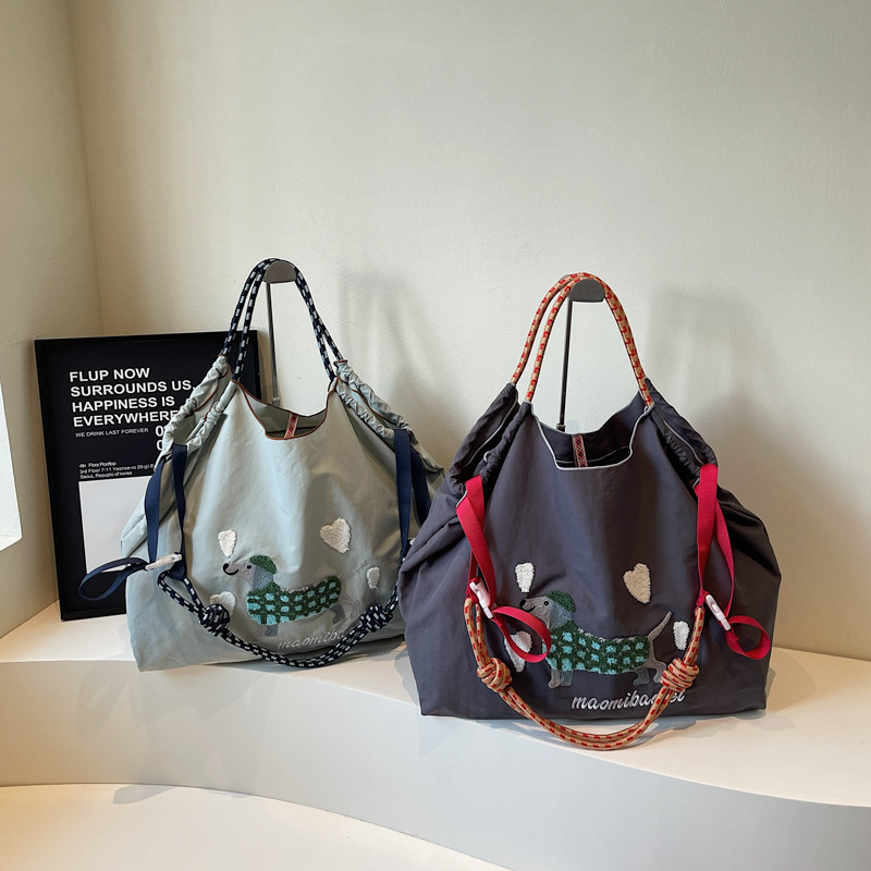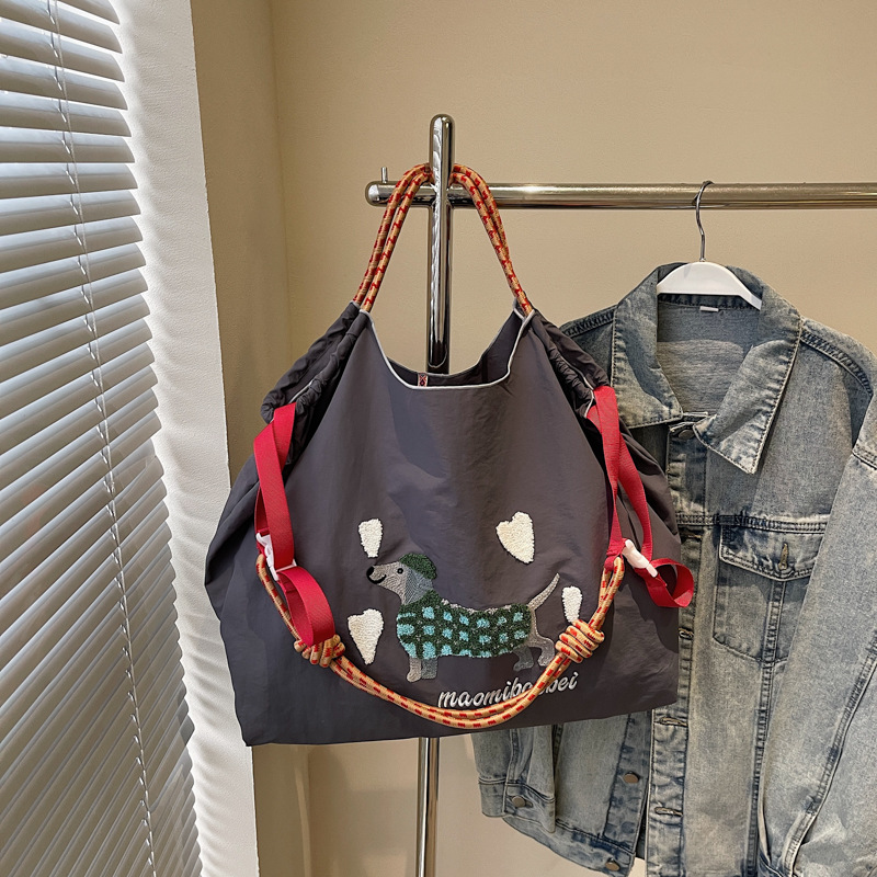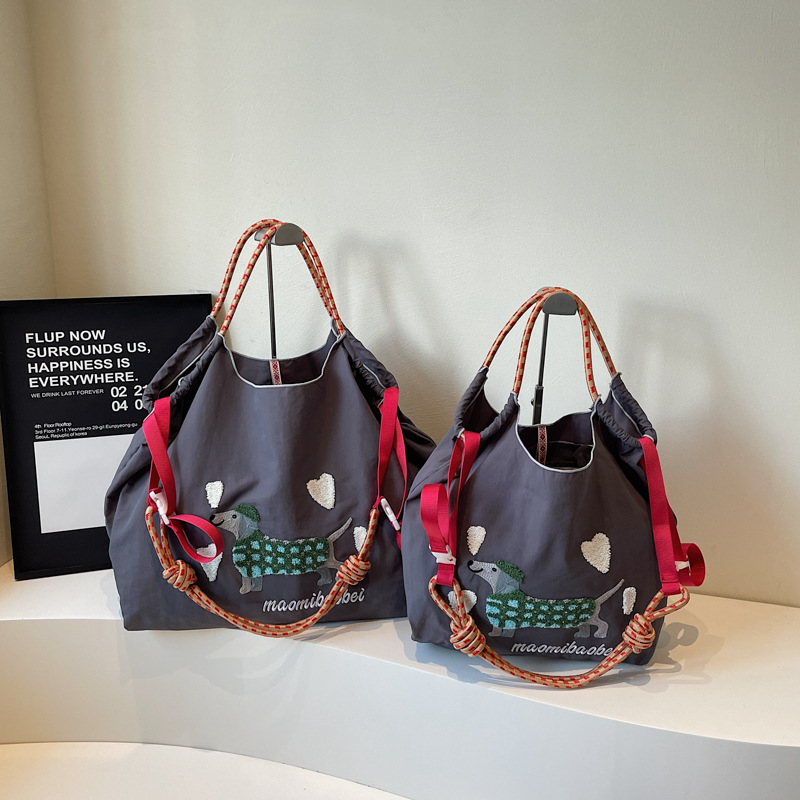 일본 자수 동물 강아지 환경 친화적 인 가방 캔버스 나일론 핸드백 환경 친화적 인 쇼핑백 작업 통근 크로스 바디 백