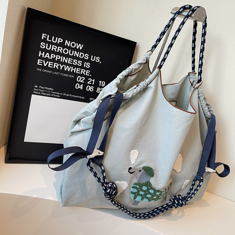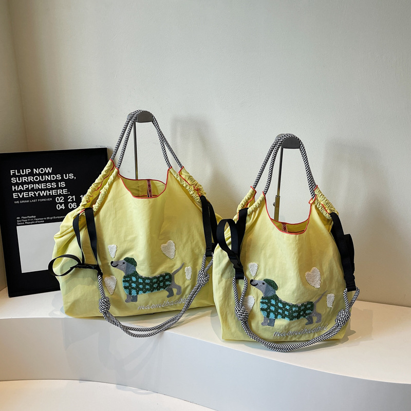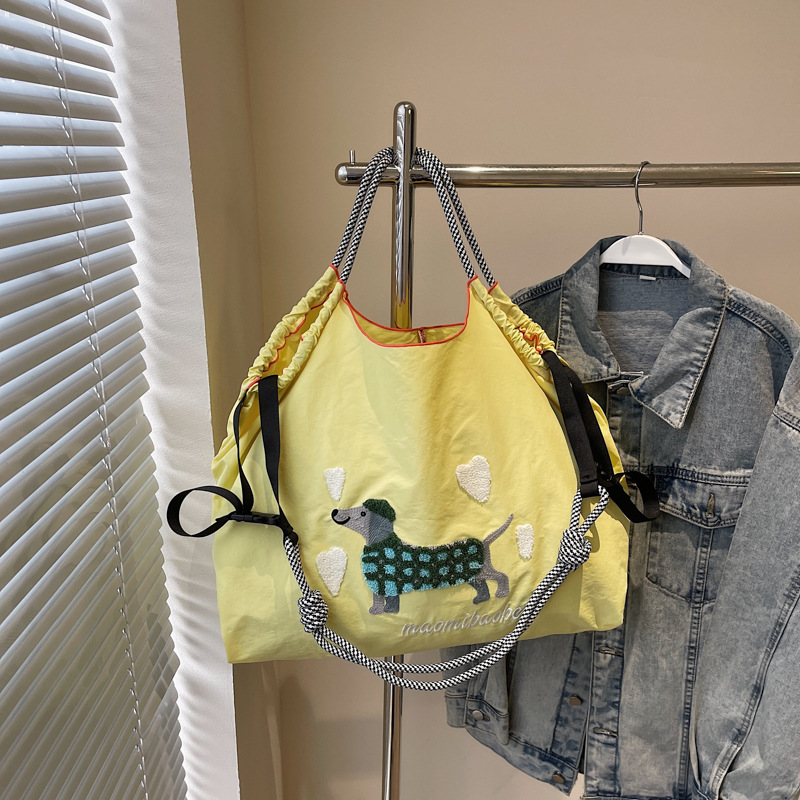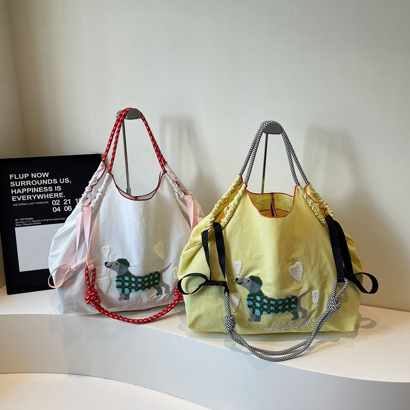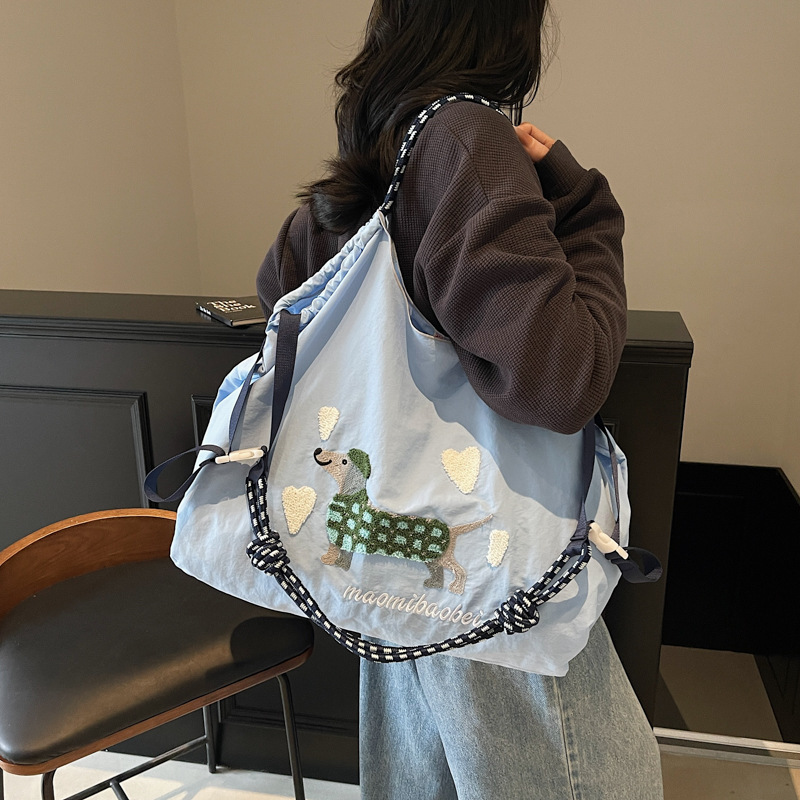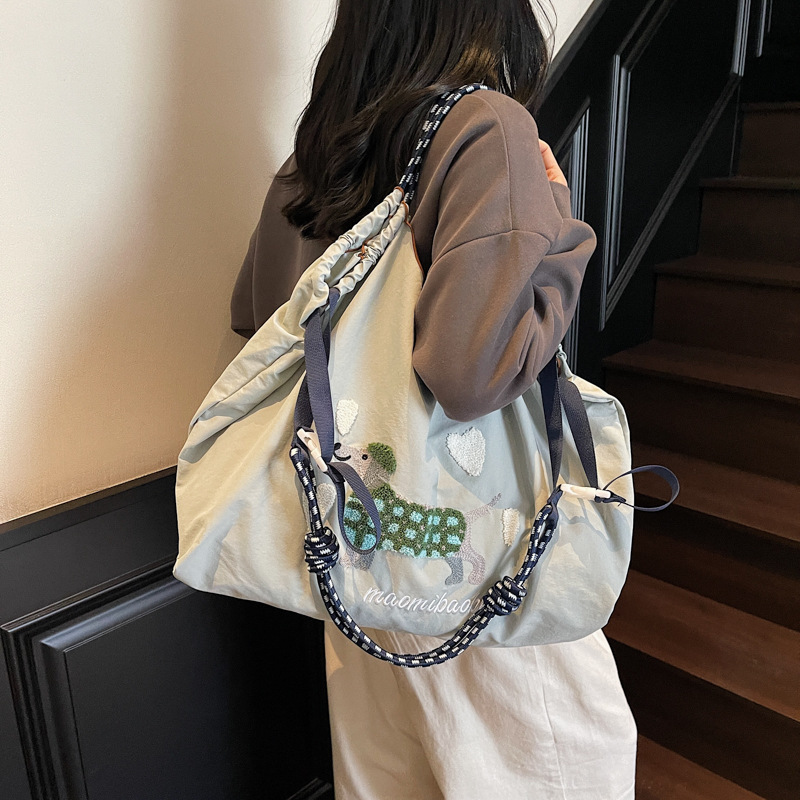 일본 자수 동물 강아지 환경 친화적 인 가방 캔버스 나일론 핸드백 환경 친화적 인 쇼핑백 작업 통근 크로스 바디 백