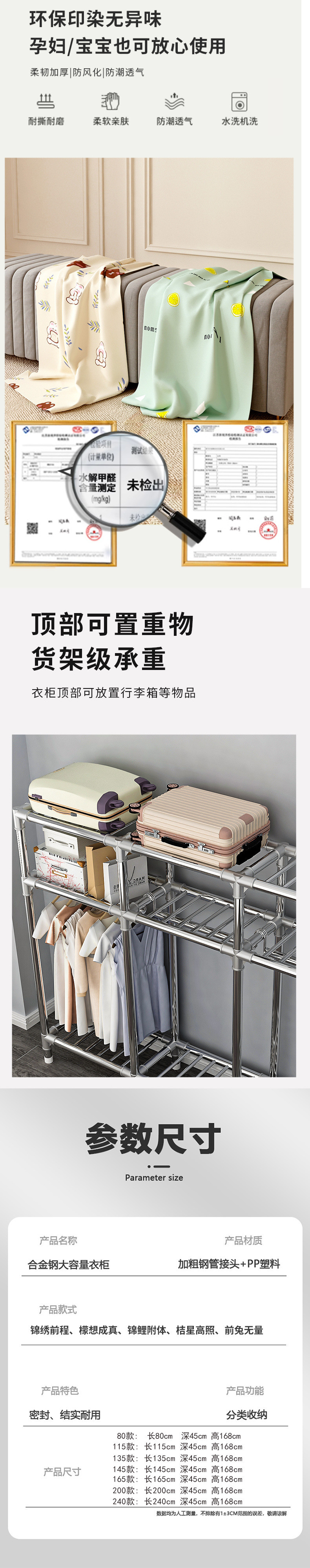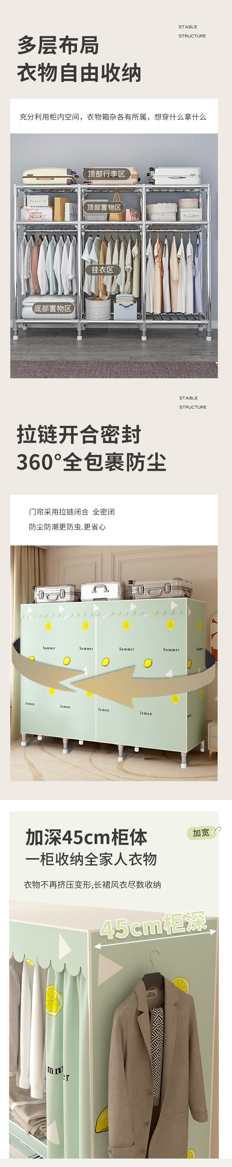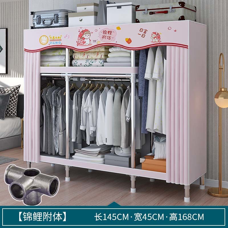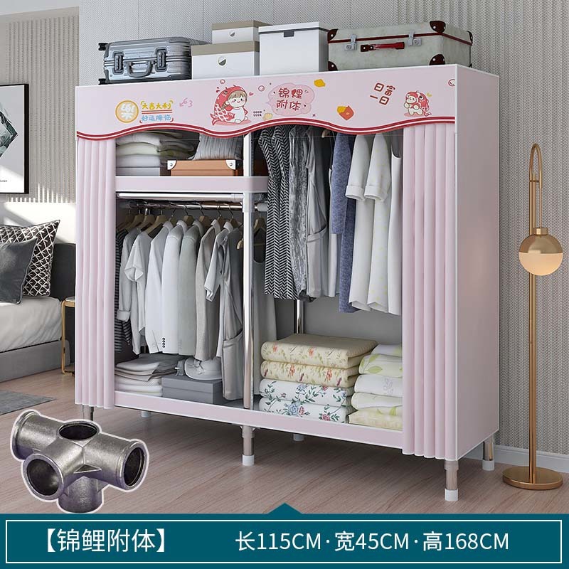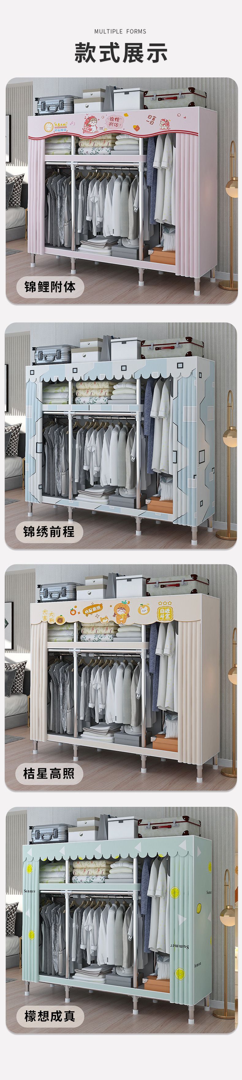 Shengbangrong 간단한 두꺼운 옷장 임대 천 옷장 홈 침실 강철 구조 옷장 옷장 보관 상자