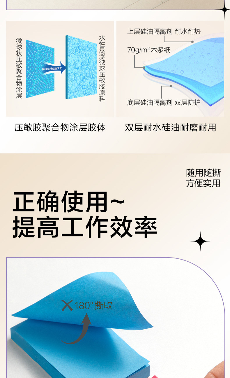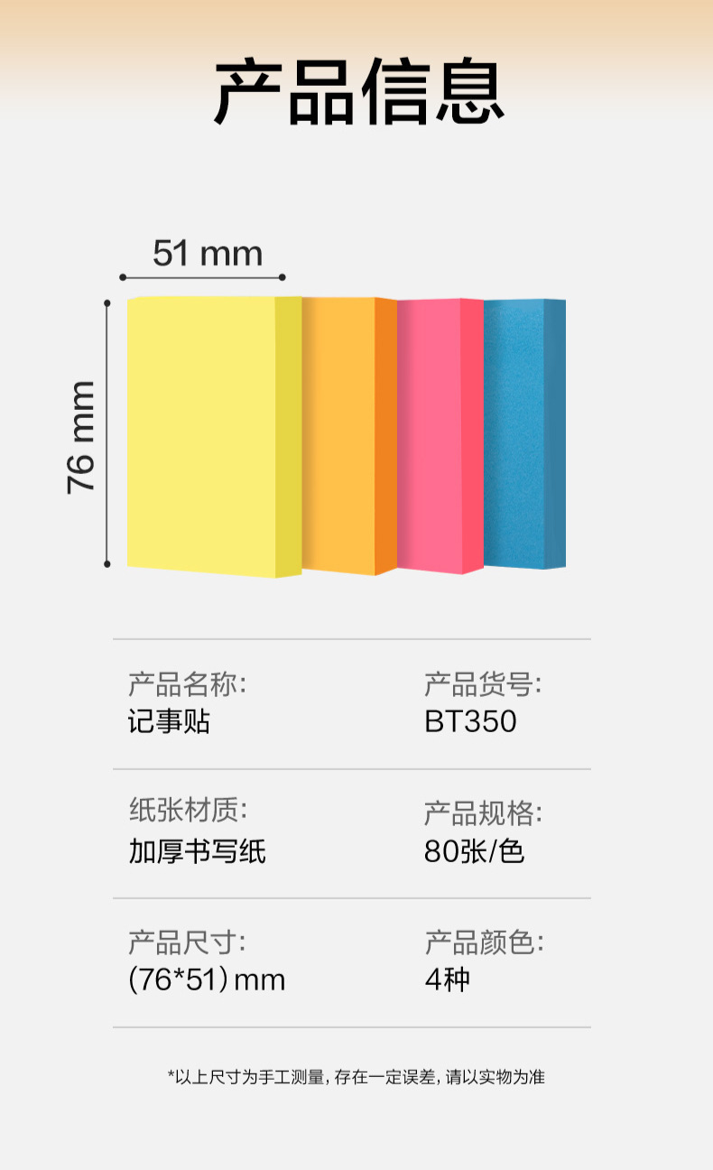 델리 BT350 형광 메모 스티커 메모지 문구 메모지 찢고 붙일 수 있음
