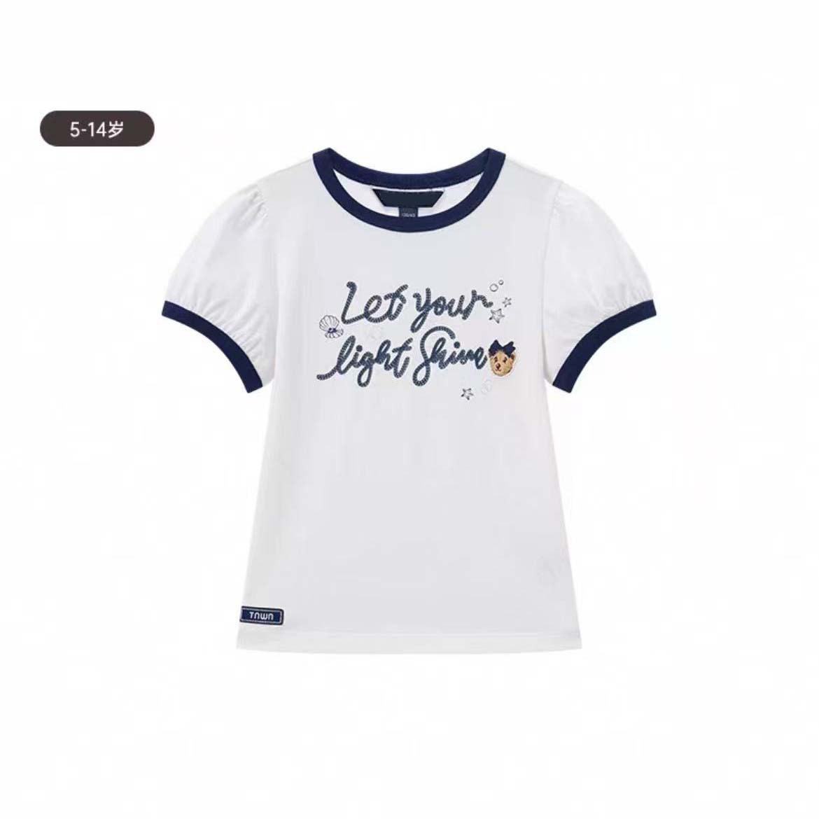25 여름 새로운 서양식 중대형 어린이 유행 대비 색 크루 넥 짧은 소매 만화 편지 곰 자수 티셔츠스토어 가기