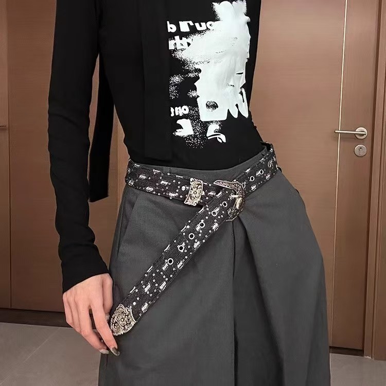 레트로 올드 펑크 웨이스트랜드 스타일 벨트, 스커트와 정장을 갖춘 여성용 맞춤형 장식 벨트, 구식 검은색 바지 벨트