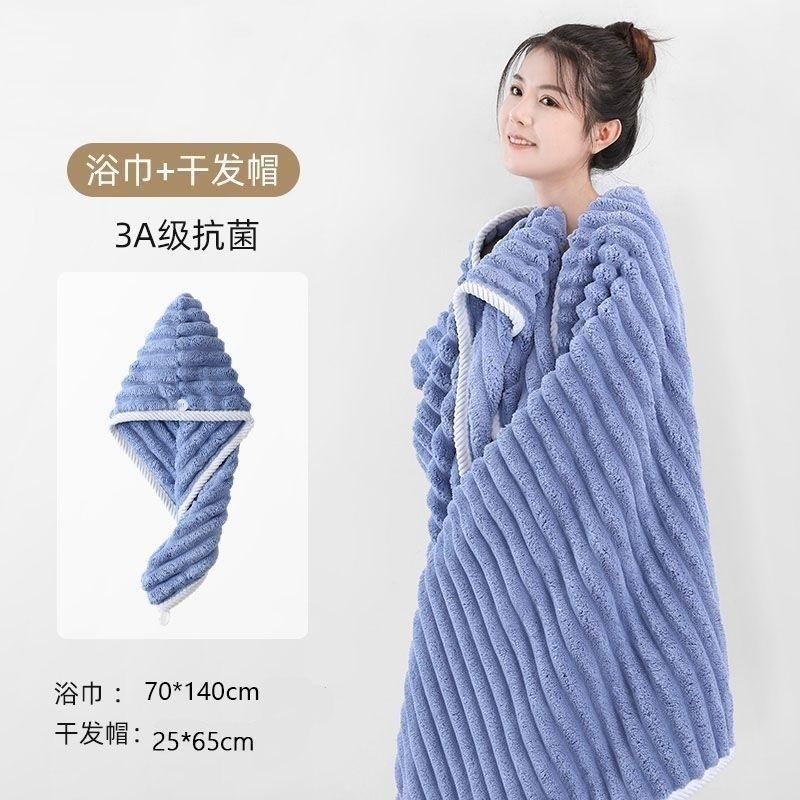 • 3종 세트: 목욕타월 + 핸드타월 + 헤어드라이어 캡 [블루]