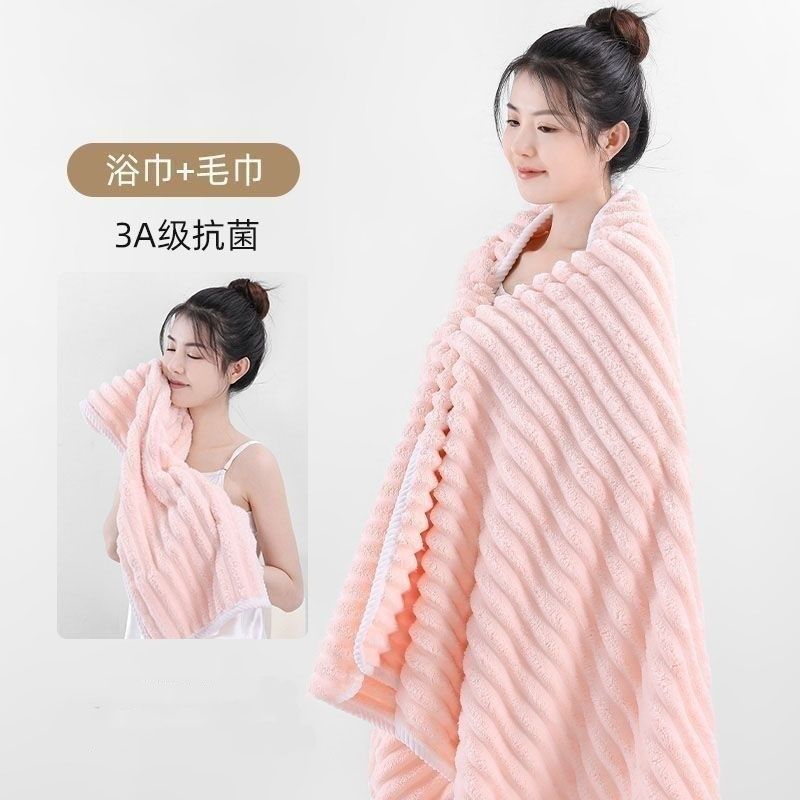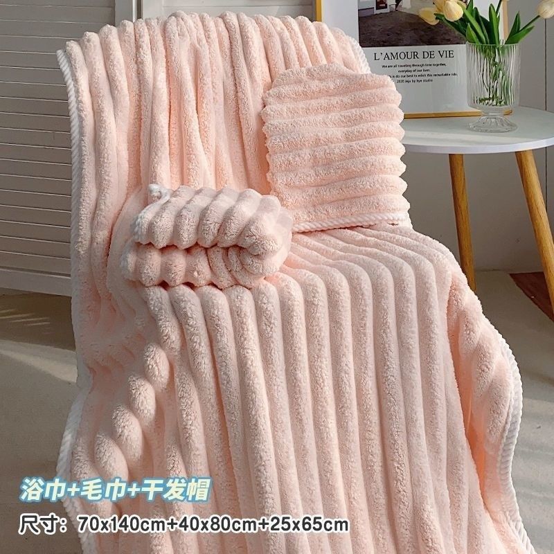 • 3종 세트: 목욕타월 + 핸드타월 + 헤어드라이어 캡 [핑크]