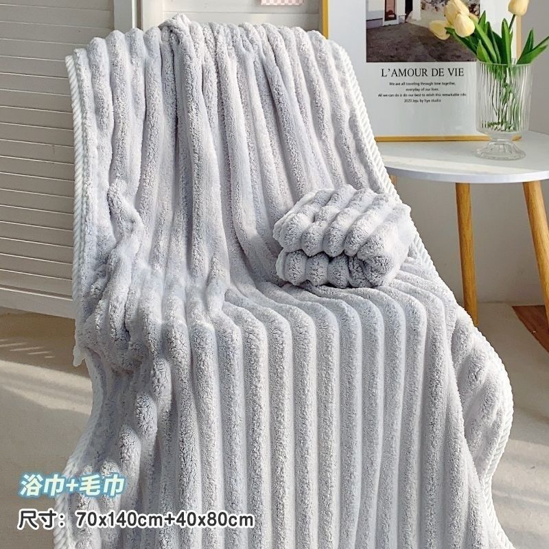 • 2종 세트: 목욕타월 + 핸드타월 [그레이]