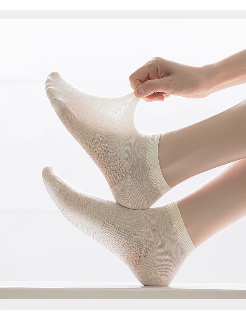 여름용 여성용 뼈없는 뽕나무 실크 양말 얇은 메쉬 통기성, 가볍고 시원한 땀 흡수 솔리드 컬러 흰색 여름 양말