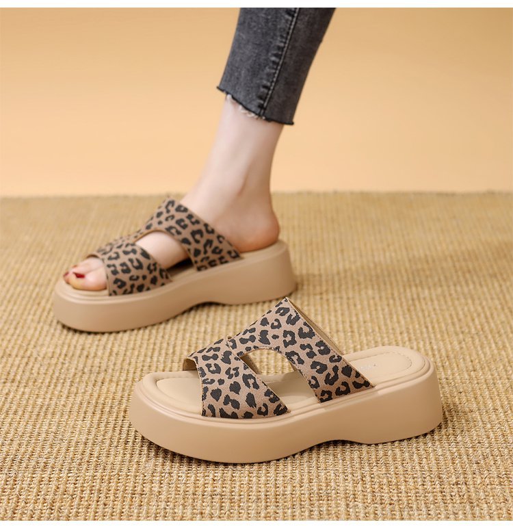 레오파드 프린트 복고풍 슬리퍼 여성 2025 봄 여름 새로운 한국 패션 해변 슬리퍼 대외 무역 두꺼운 밑창 샌들스토어 가기