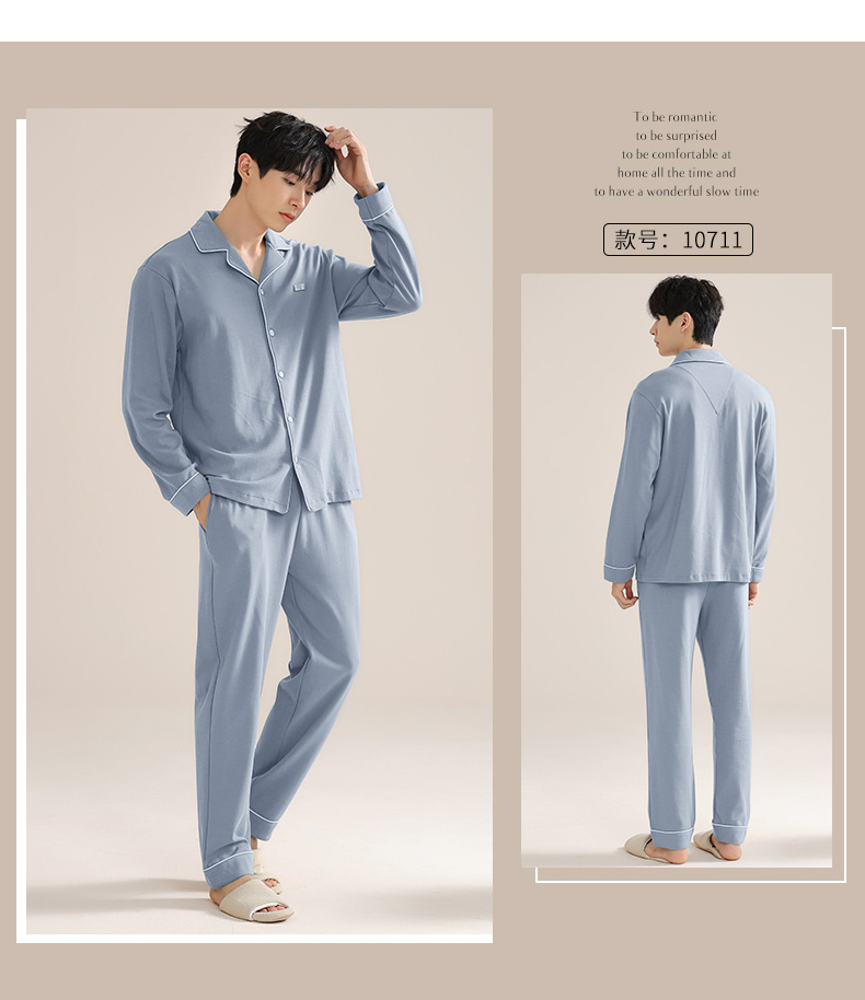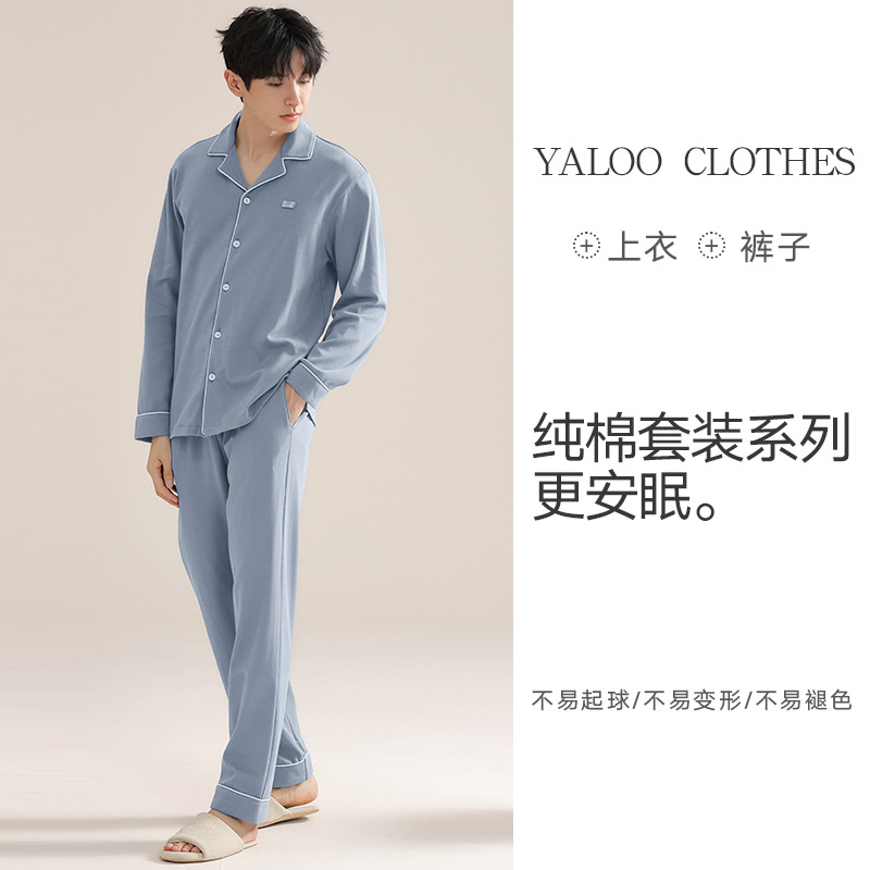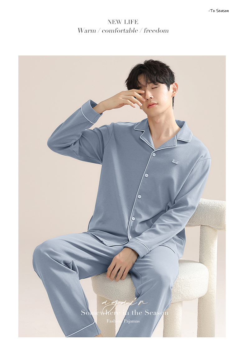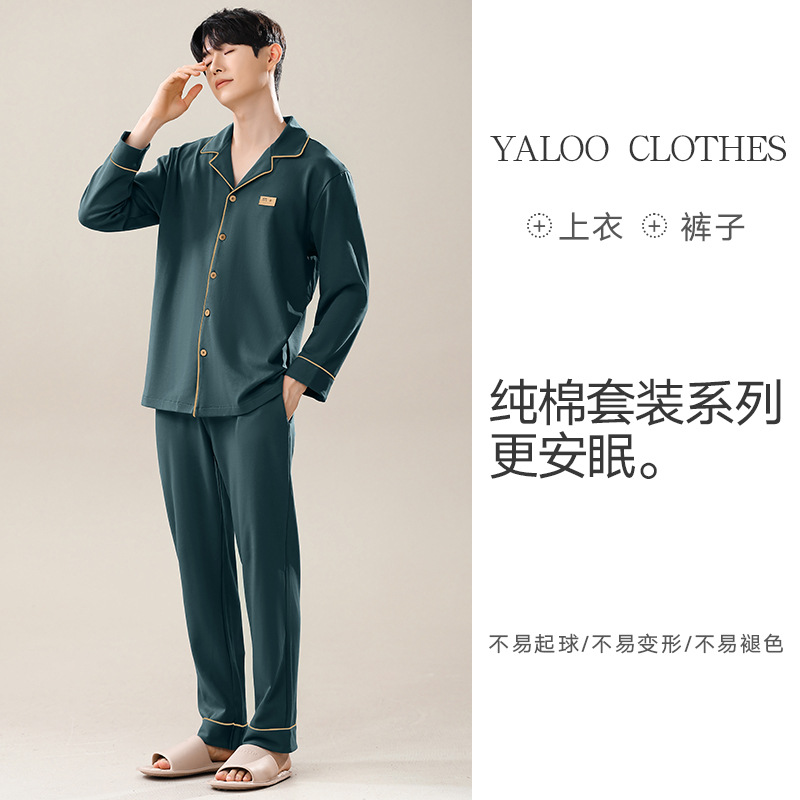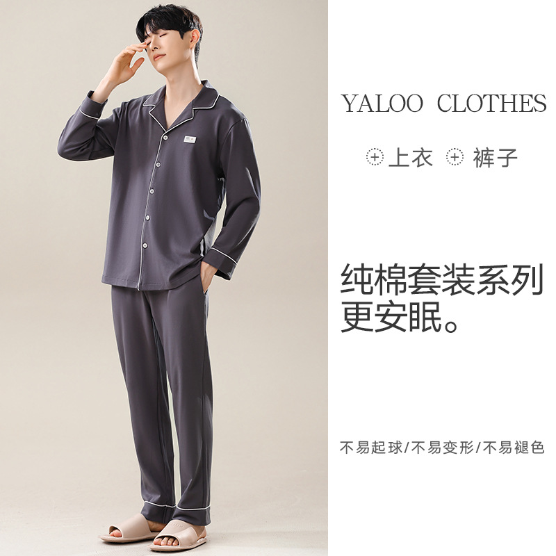 남성 잠옷 봄과 가을 새로운 100% 면 플러스 사이즈 긴 소매 바지 홈웨어 세트 여름 외부 착용 가능스토어 가기