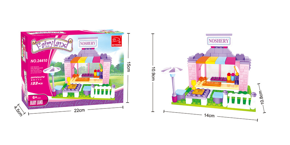 빌딩 블록 새로운 공주 성 바베큐 가게 교육 빌딩 블록 소녀의 빌딩 블록 포장 장면 놀이 장난감스토어 가기