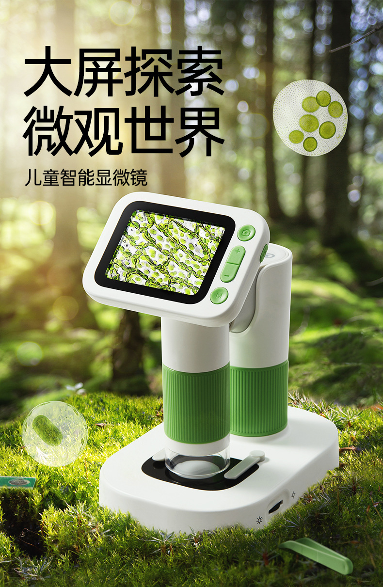 Bainshi 어린이 현미경 고화질 초등학생 미니 휴대용 생물학 전문 과학 실험 세트 장난감스토어 가기