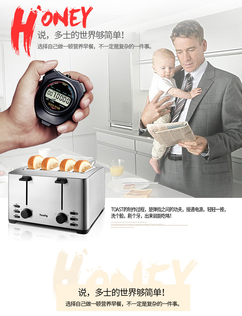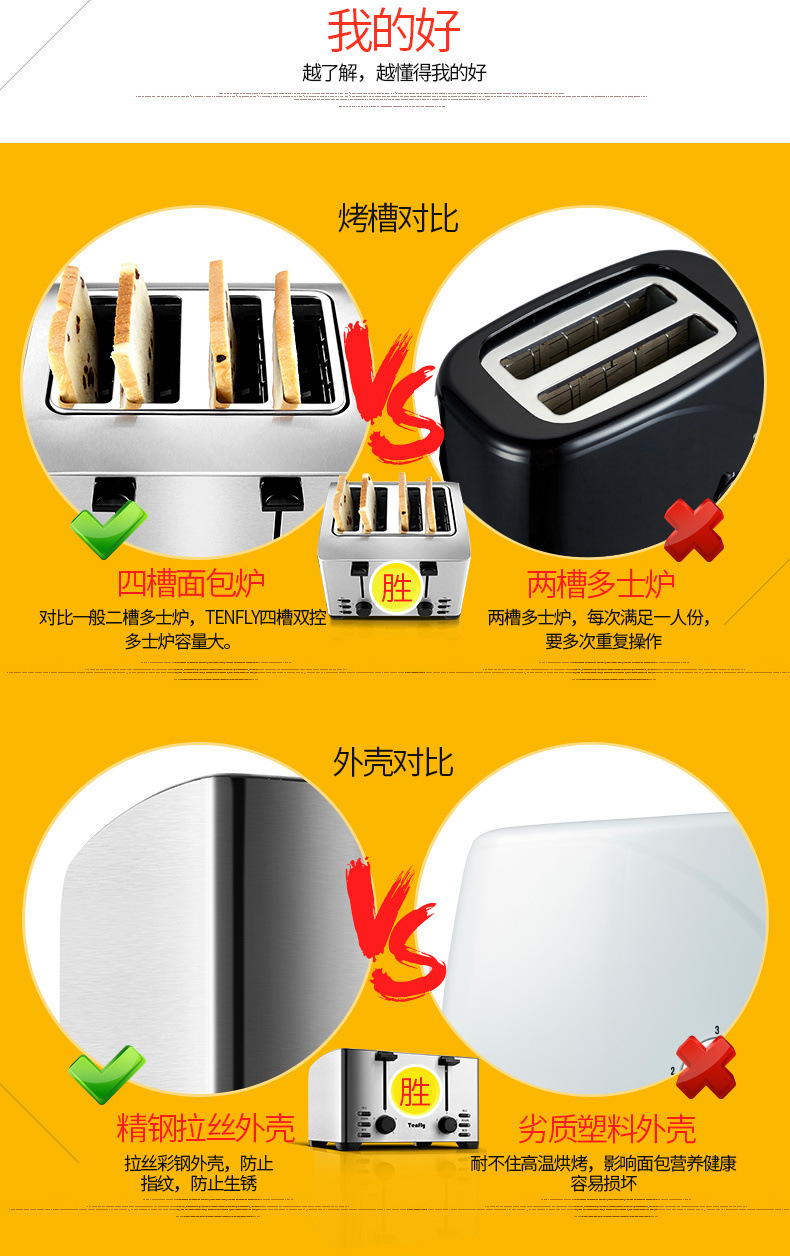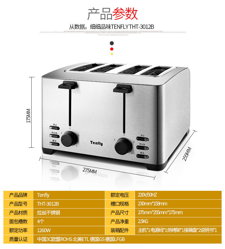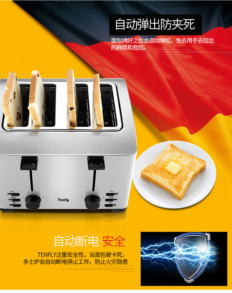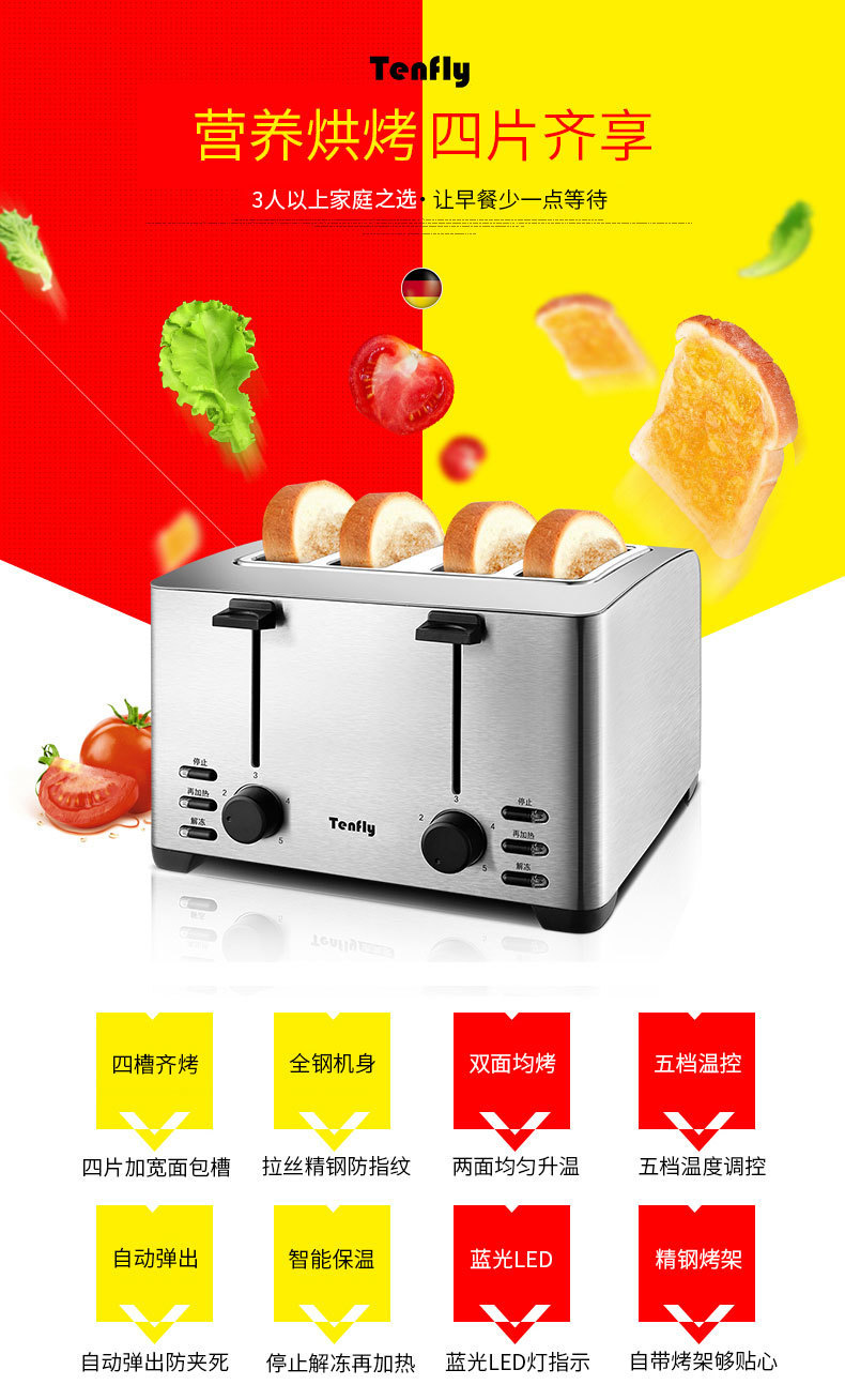 Tenfly 스테인레스 스틸 토스트 가정용 상업용 토스터 아침 식사 샌드위치 토스터 토스터 4 조각