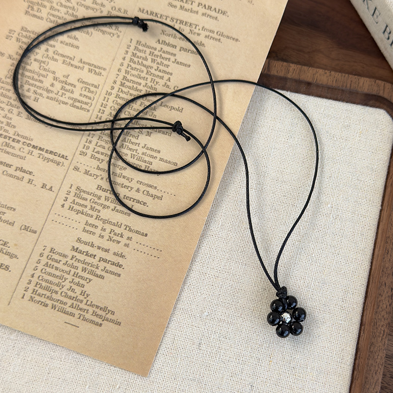 한국 블로거 같은 스타일 블랙 실버 구슬 꽃 펜던트 목걸이 Ins 간단한 올 매치 긴 목걸이스토어 가기