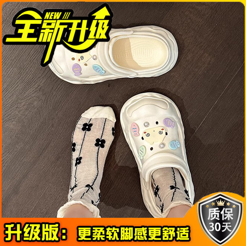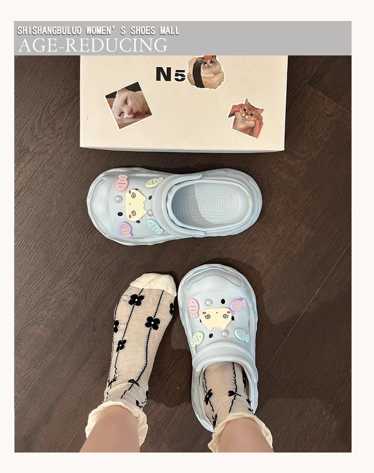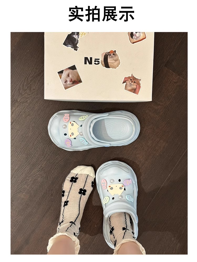 여름철 여성을 위한 크록스 슈즈, 두꺼운 밑창의 비치 슈즈, 귀여운 만화의 다재다능한 캐주얼 PVC 샌들스토어 가기