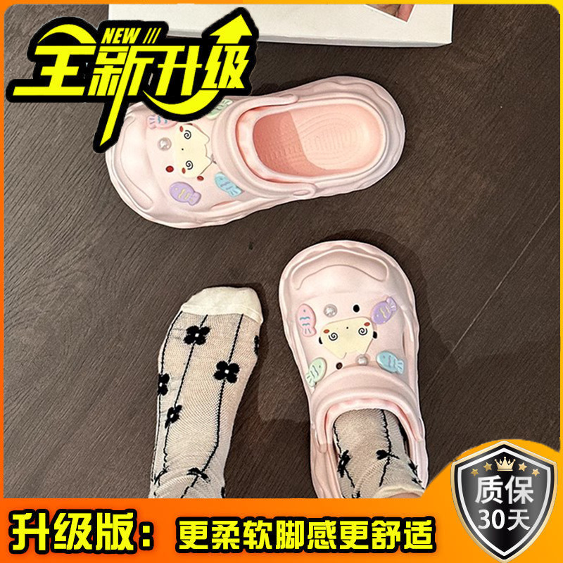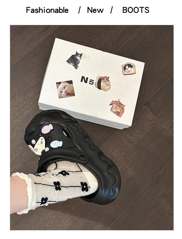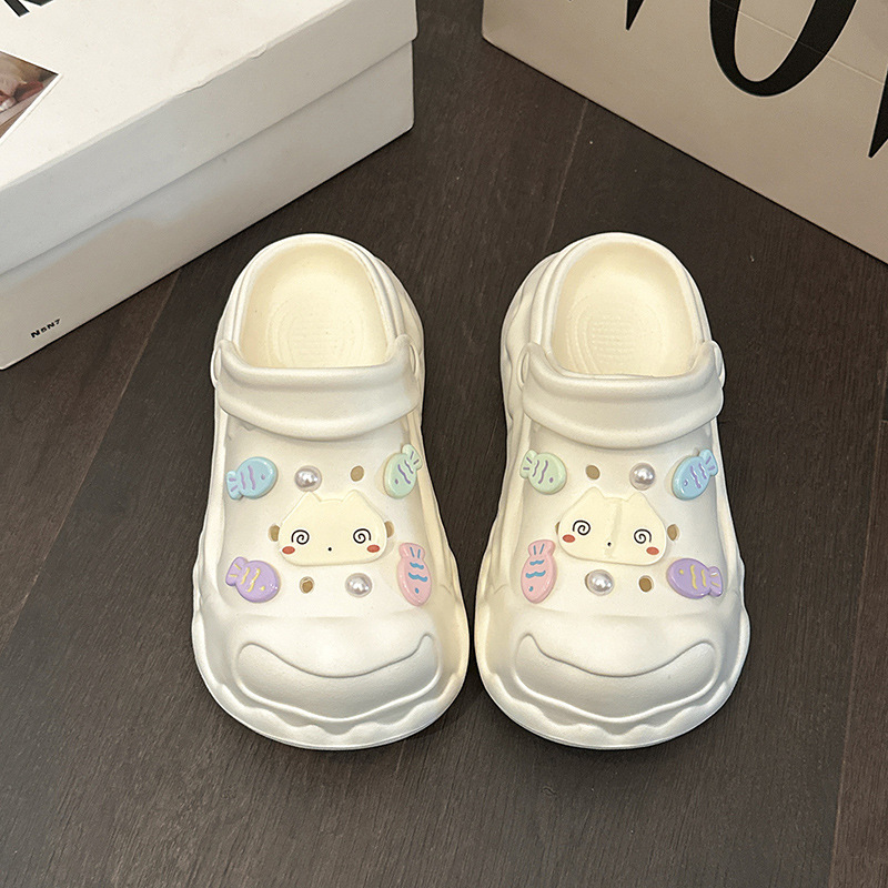 여름철 여성을 위한 크록스 슈즈, 두꺼운 밑창의 비치 슈즈, 귀여운 만화의 다재다능한 캐주얼 PVC 샌들