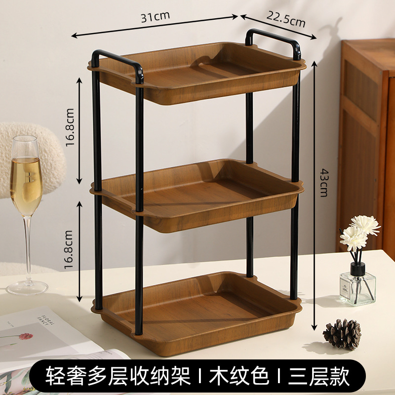 도파민 나뭇결 주방 수납 선반 거실 입구 조리대 수납 선반 더블 레이어 정리 선반 공장 직접 판매