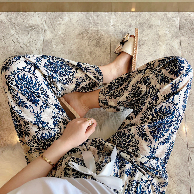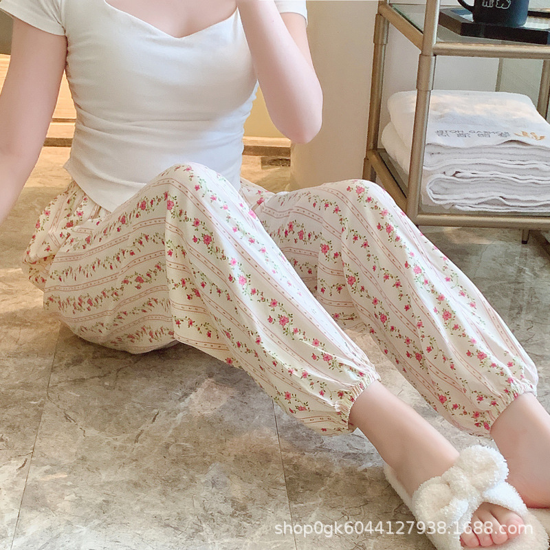 여성용 얇은 면 실크 잠옷 바지, 새로운 스타일의 여름용 인조 면 랜턴 바지, 실내외 착용 가능, 대형 사이즈스토어 가기