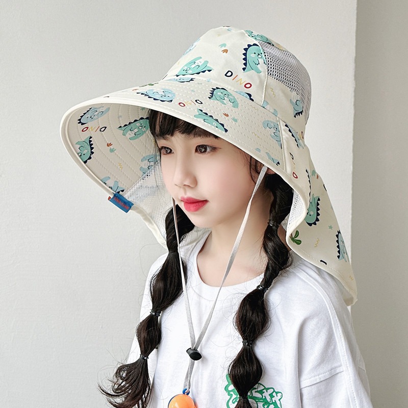 어린이 만화 공룡 모자 여름 태양 보호 목 목도리 모자 소년과 소녀 여행 태양 보호 큰 챙 어부 모자스토어 가기
