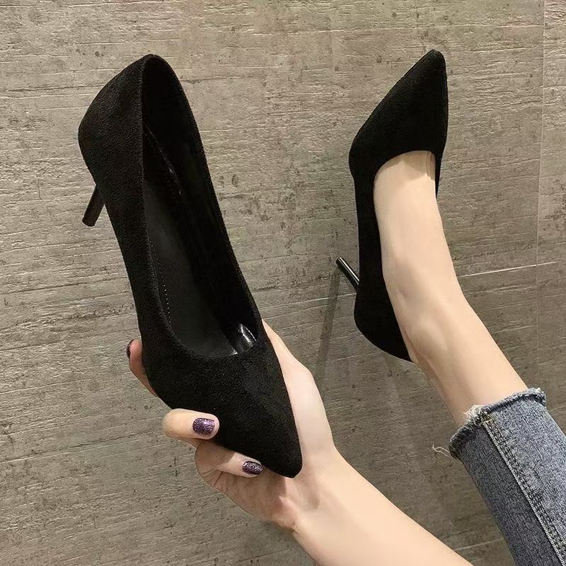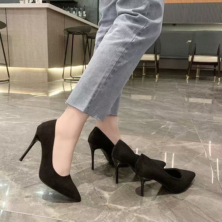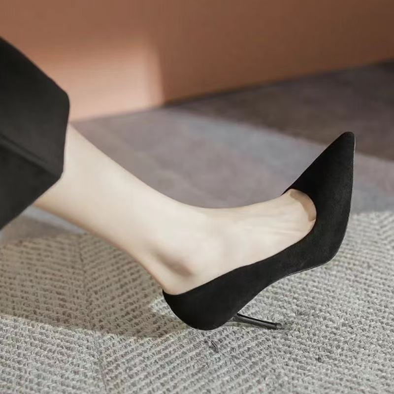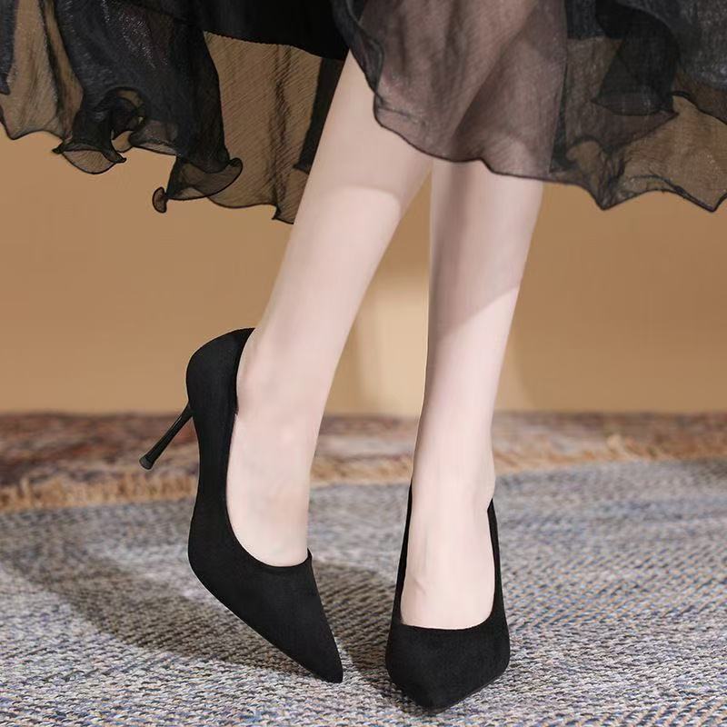 피곤하지 않은 작업화 2025 슈퍼 하이 뉴 블랙 하이힐 여성 스틸레토 힐 전문 통근 포인티드 토 에티켓 슈즈스토어 가기