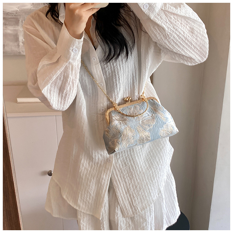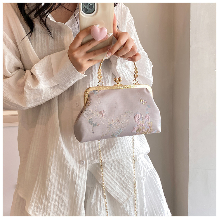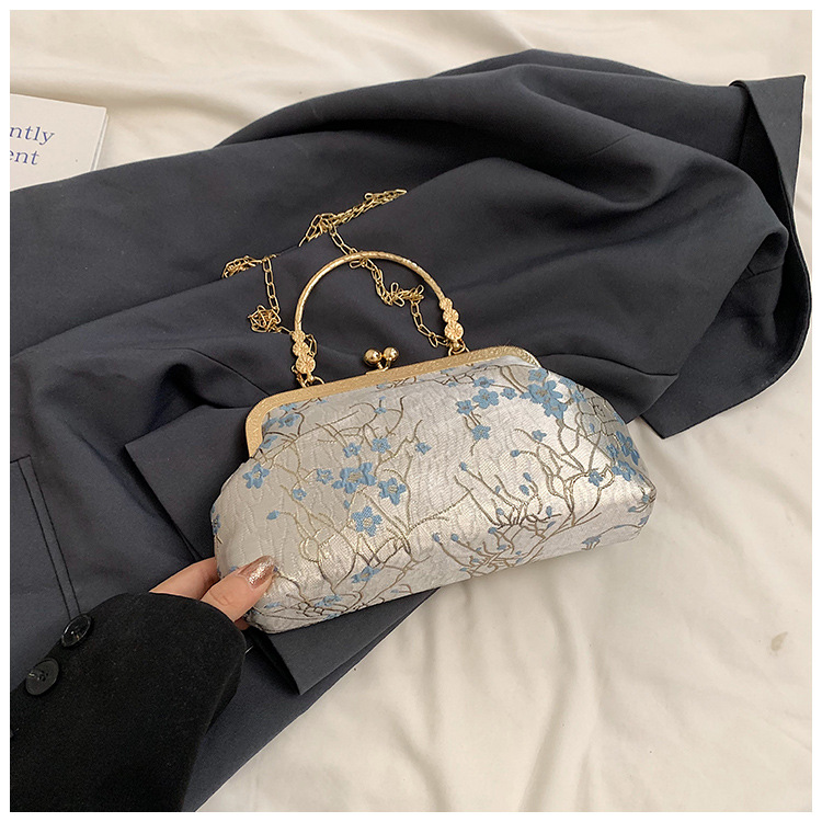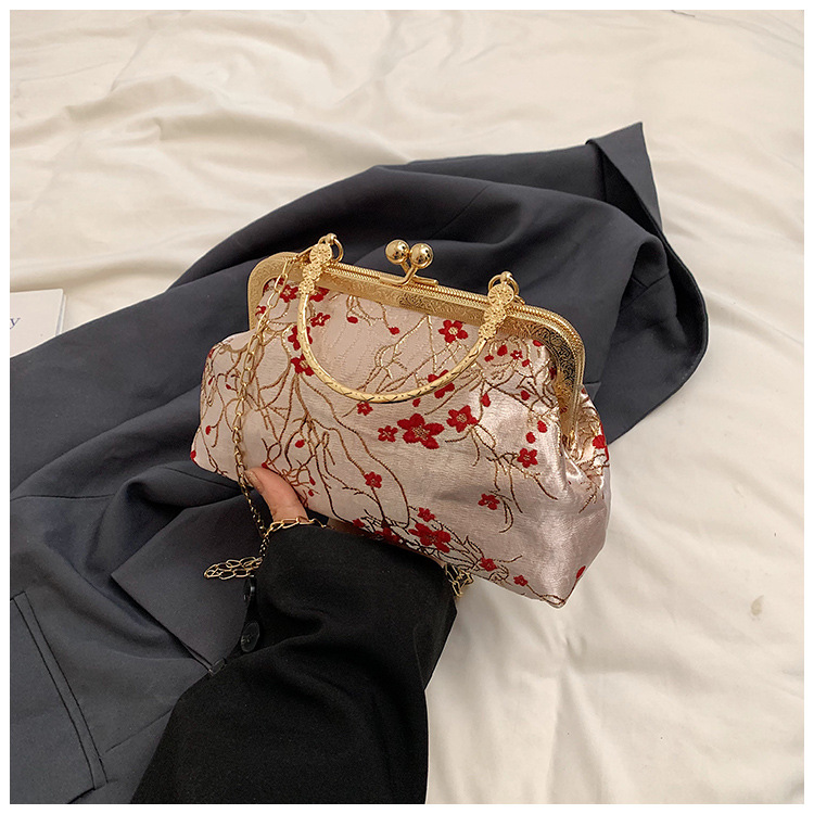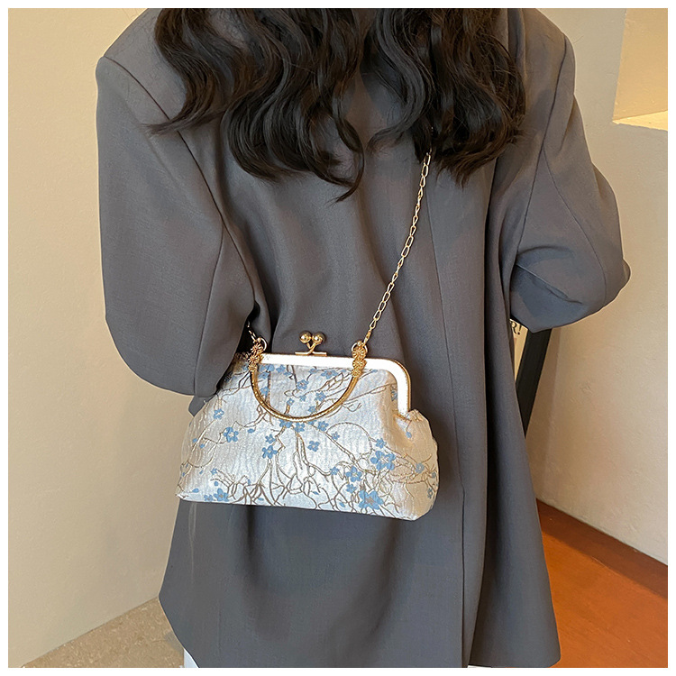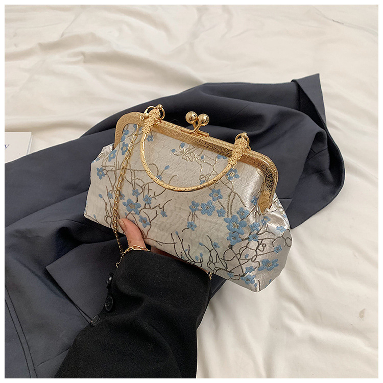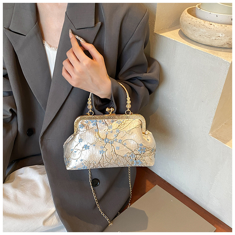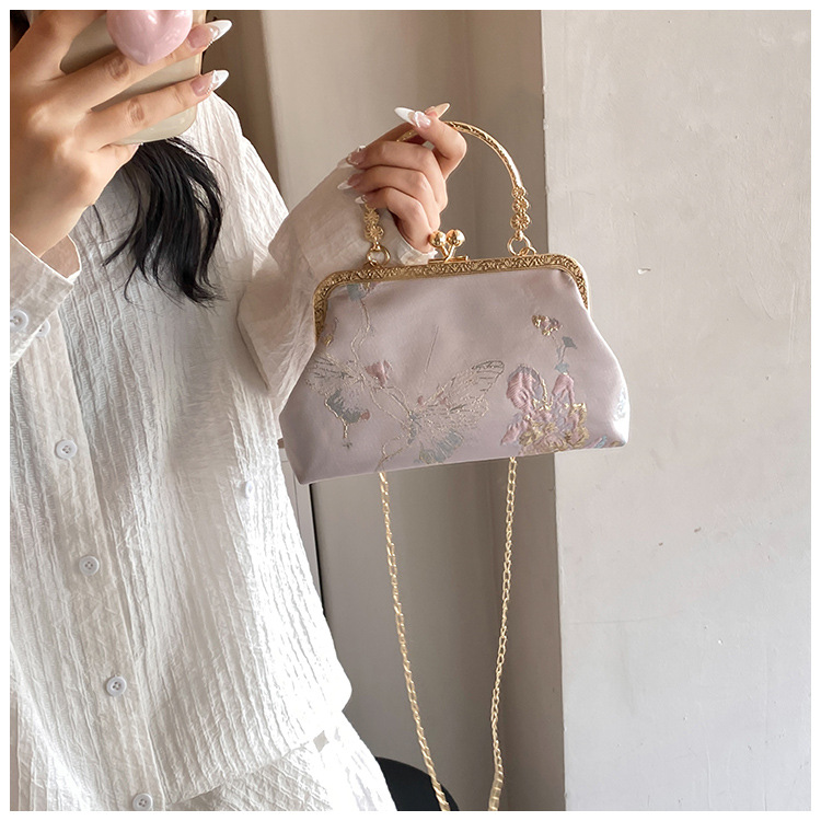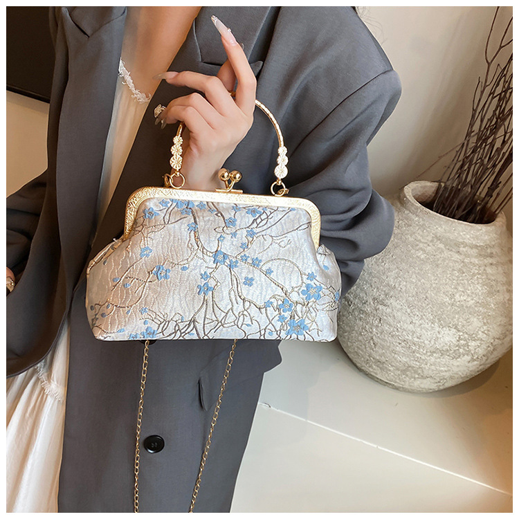 새로운 중국 스타일의 중국 스타일 자수 핸드백, 고급스럽고 세련된 체인 클립백, 우아한 여성용 크로스백, 크로스보더스토어 가기