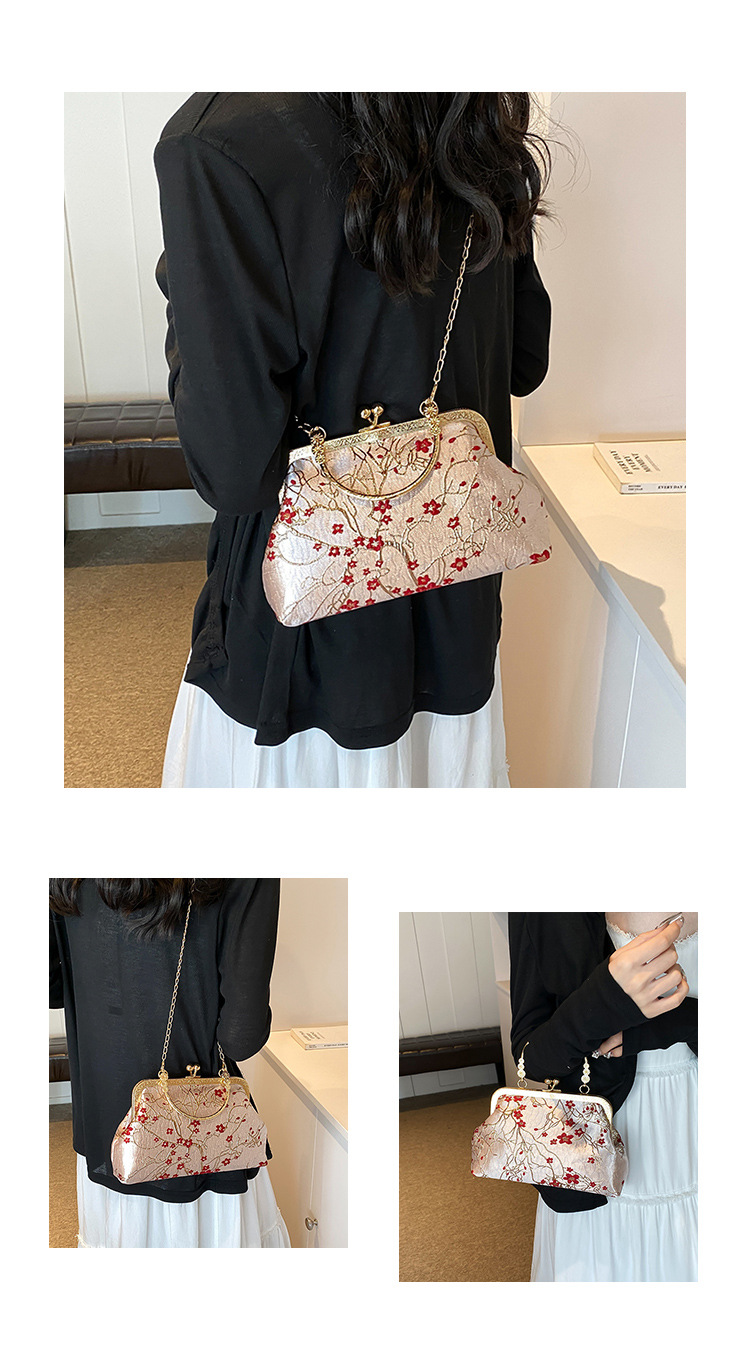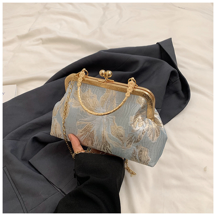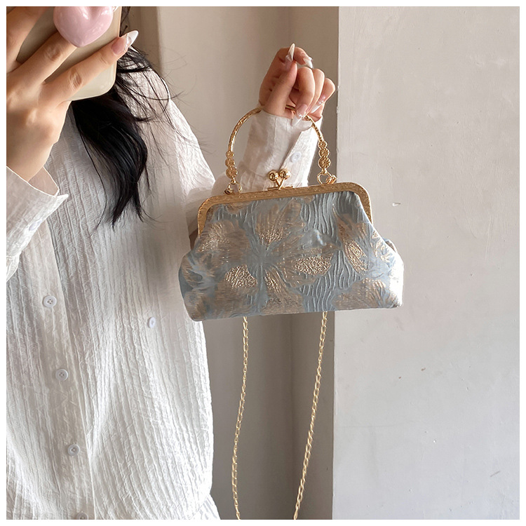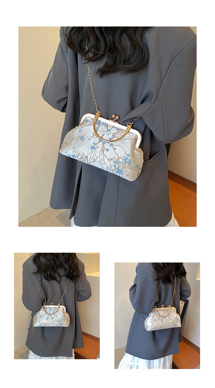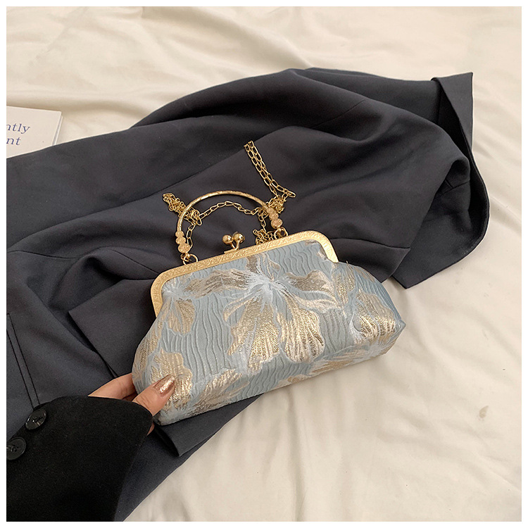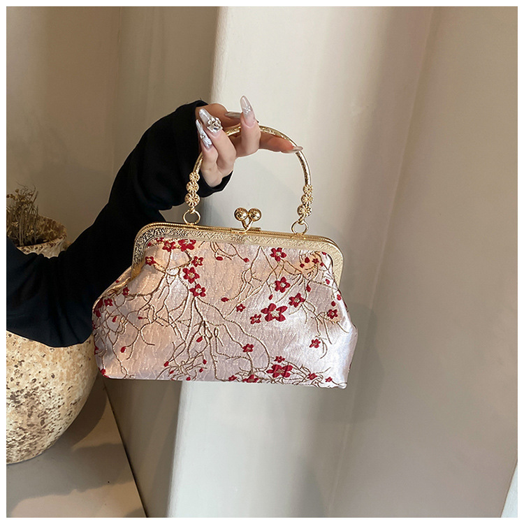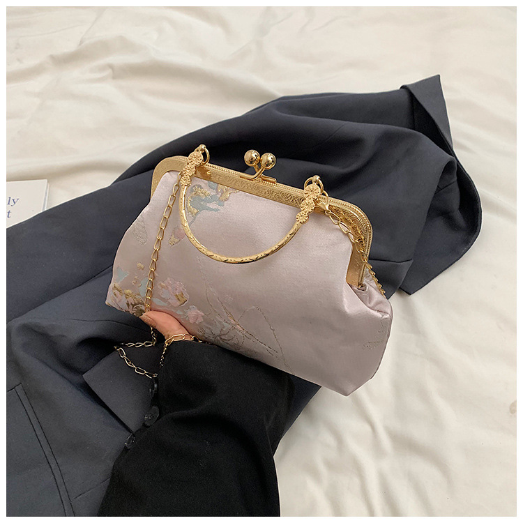 새로운 중국 스타일의 중국 스타일 자수 핸드백, 고급스럽고 세련된 체인 클립백, 우아한 여성용 크로스백, 크로스보더스토어 가기