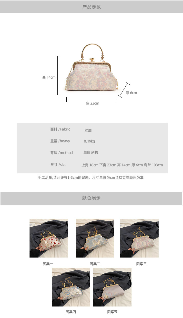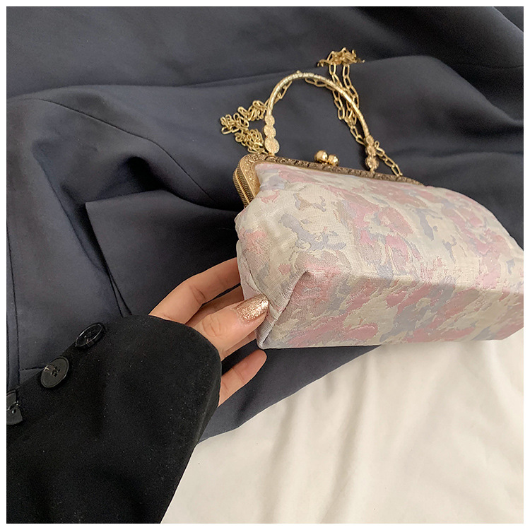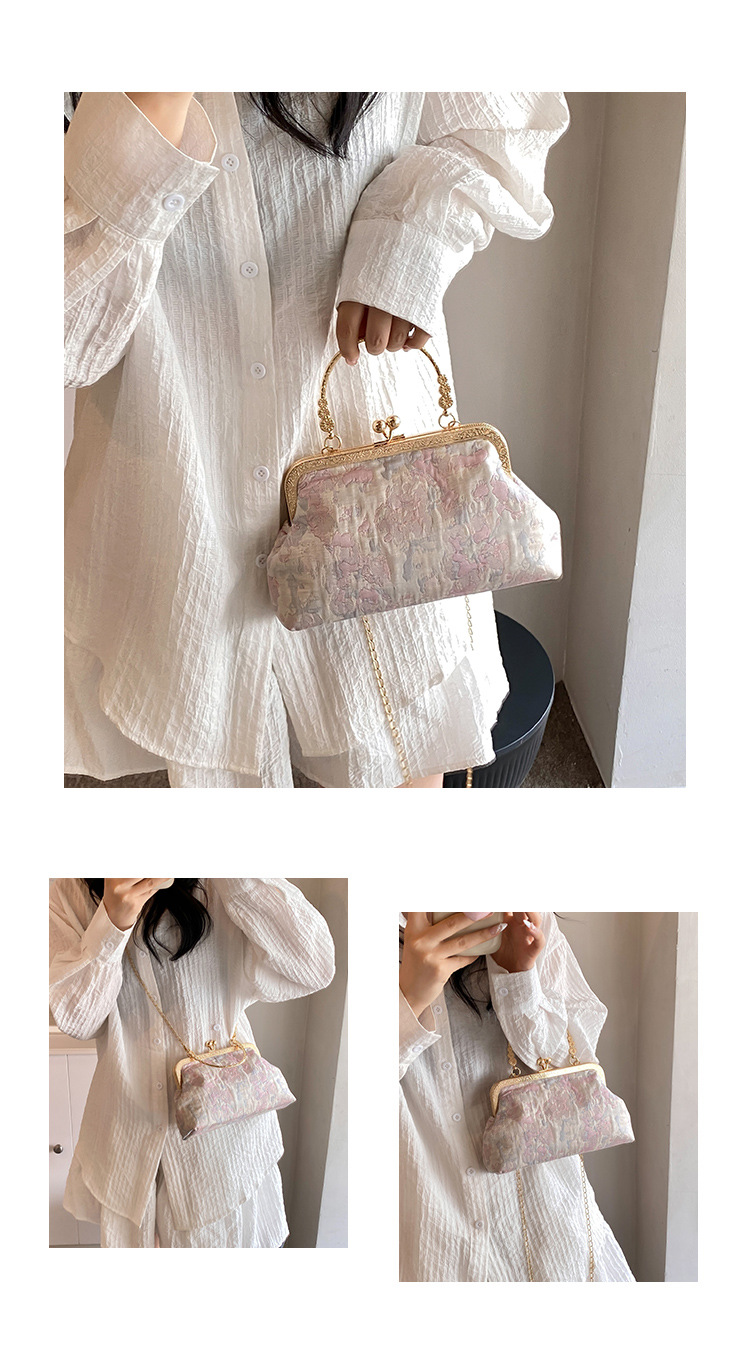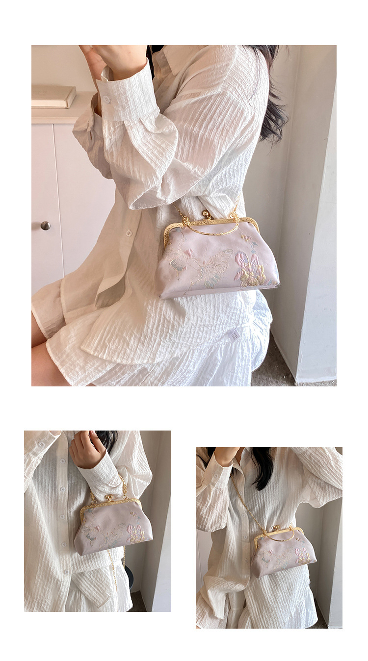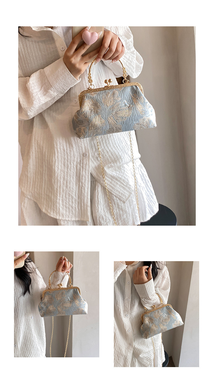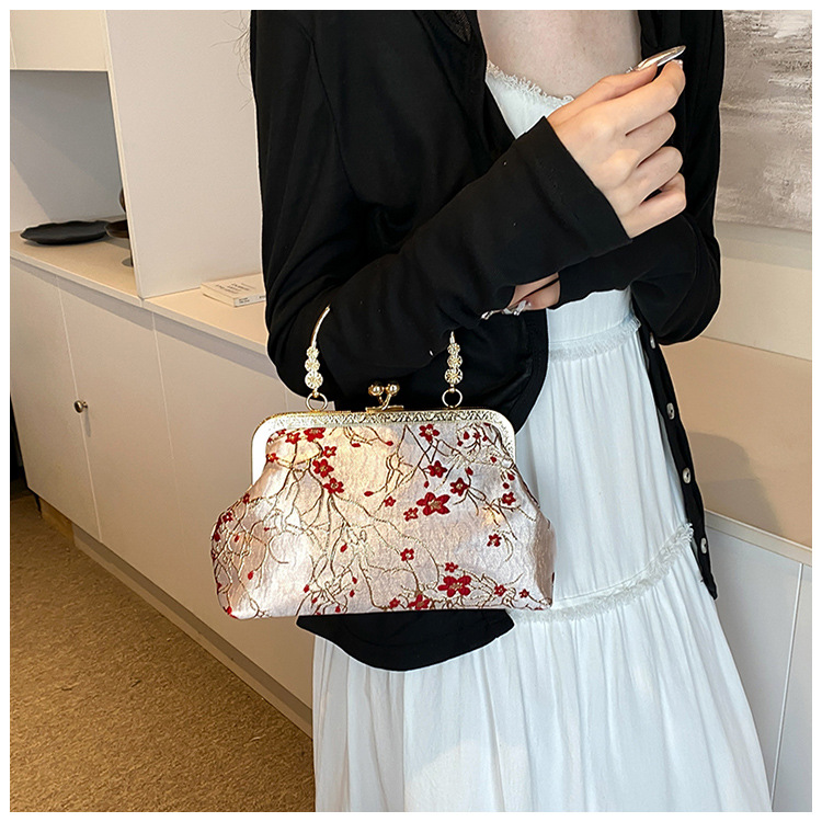 새로운 중국 스타일의 중국 스타일 자수 핸드백, 고급스럽고 세련된 체인 클립백, 우아한 여성용 크로스백, 크로스보더스토어 가기