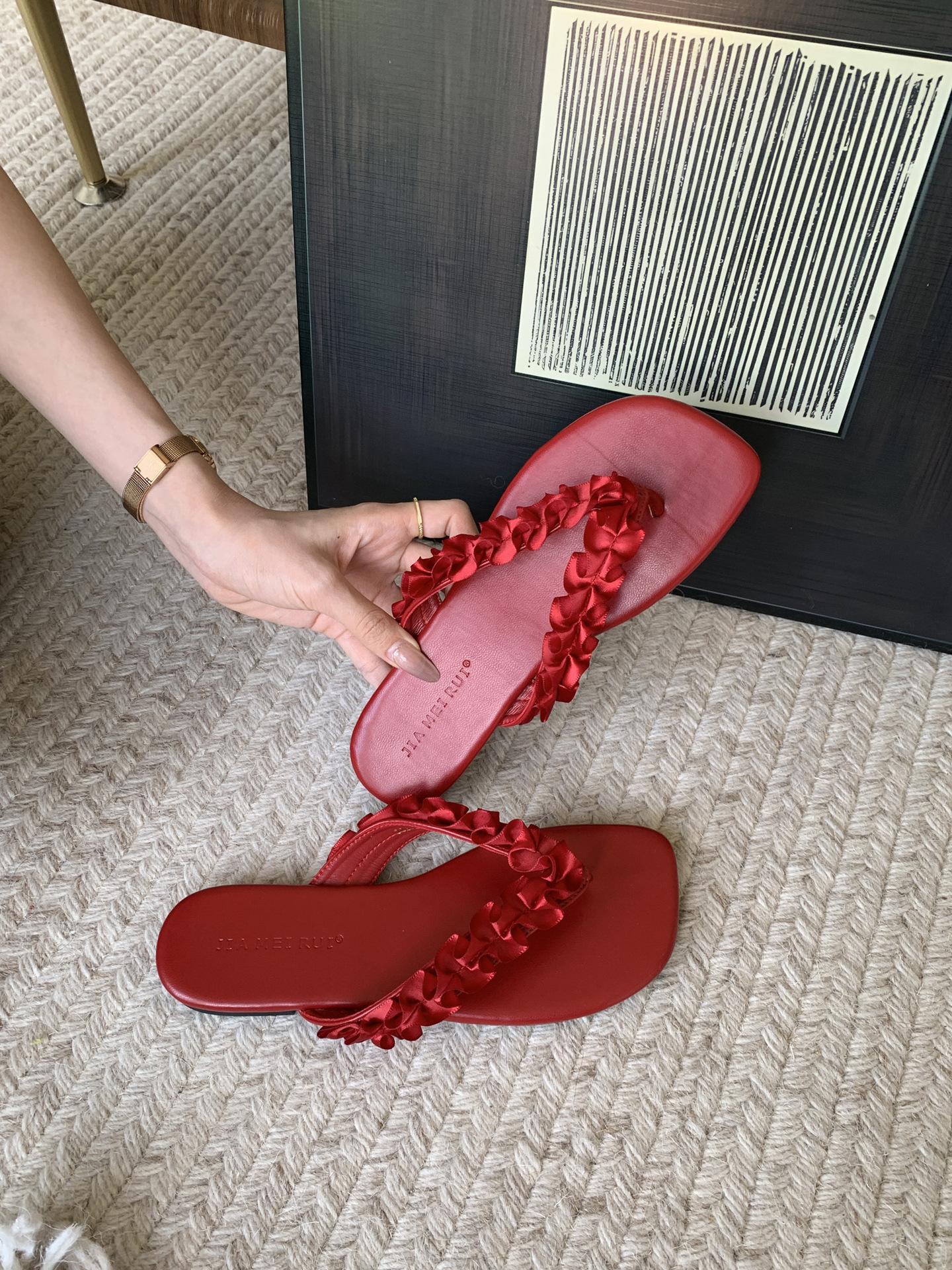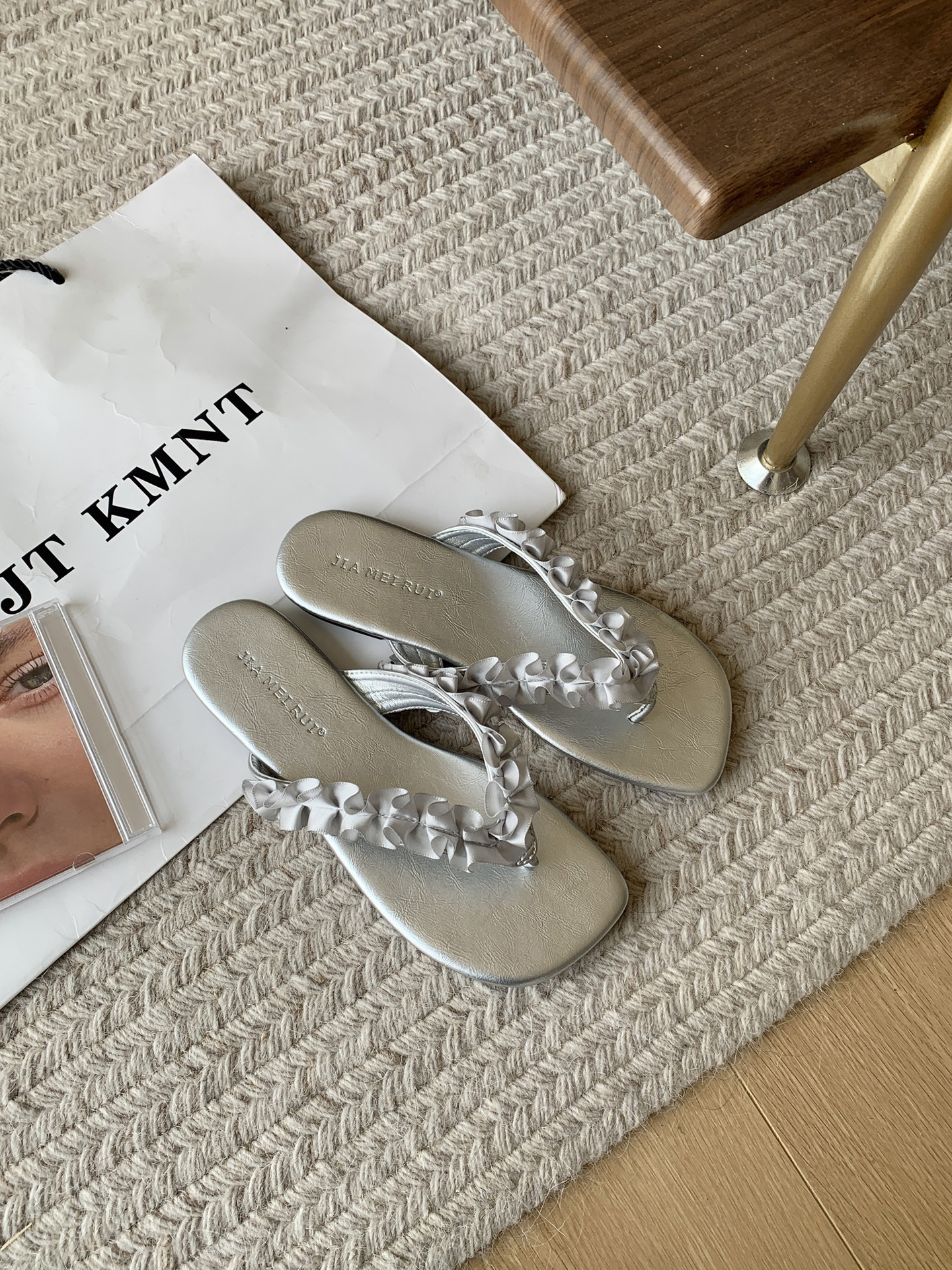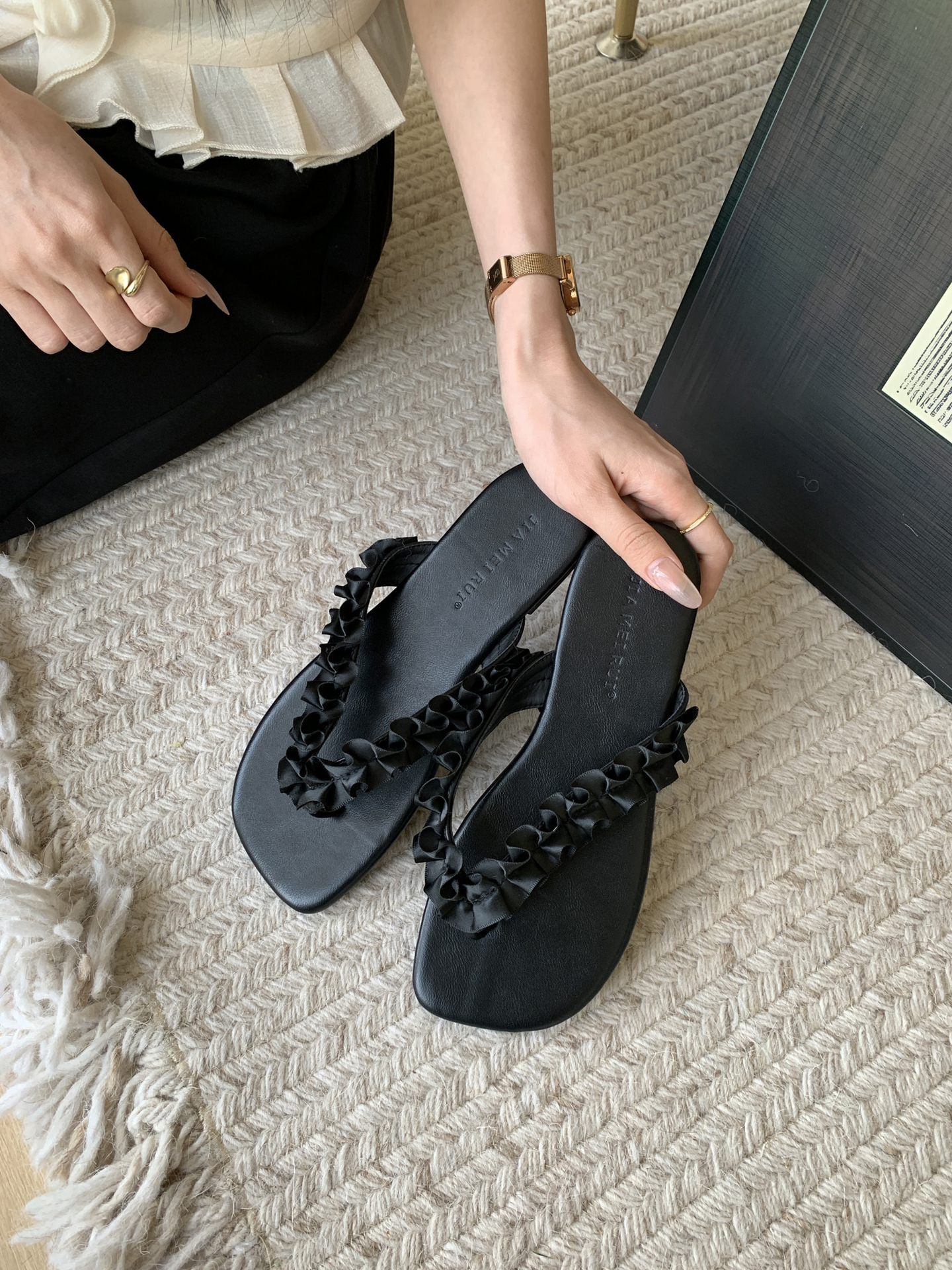 2025년 여름 신상 라운드 투 헤링본 오픈 토 러플 레이스 플랫 바닥 게으른 여성용 비치 휴가 샌들스토어 가기