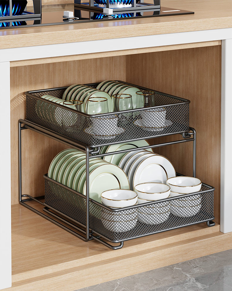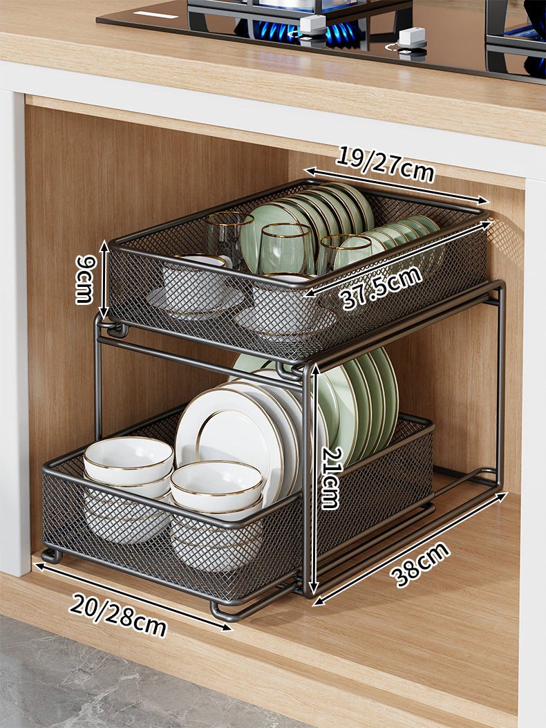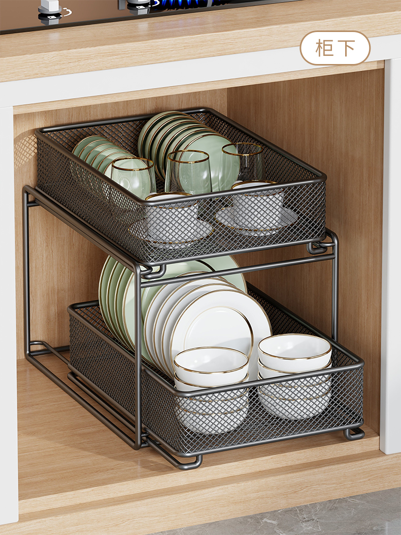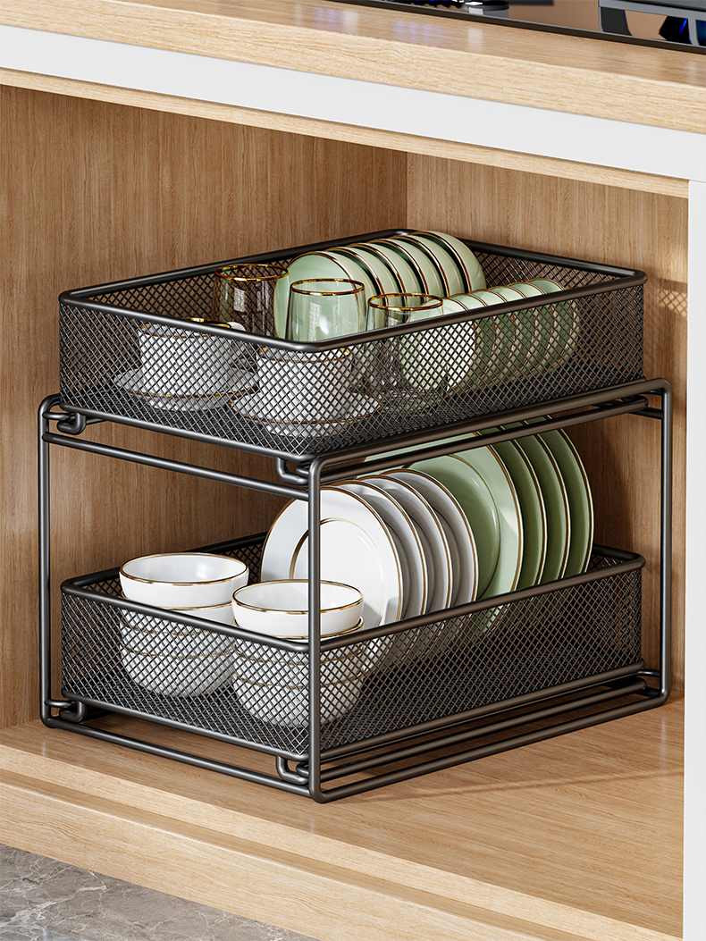 새로운 주방 싱크대 아래 수납 선반, 캐비닛, 접시 걸이, 바구니, 캐비닛 내부 계층형 선반, 다기능 접시 수납 서랍