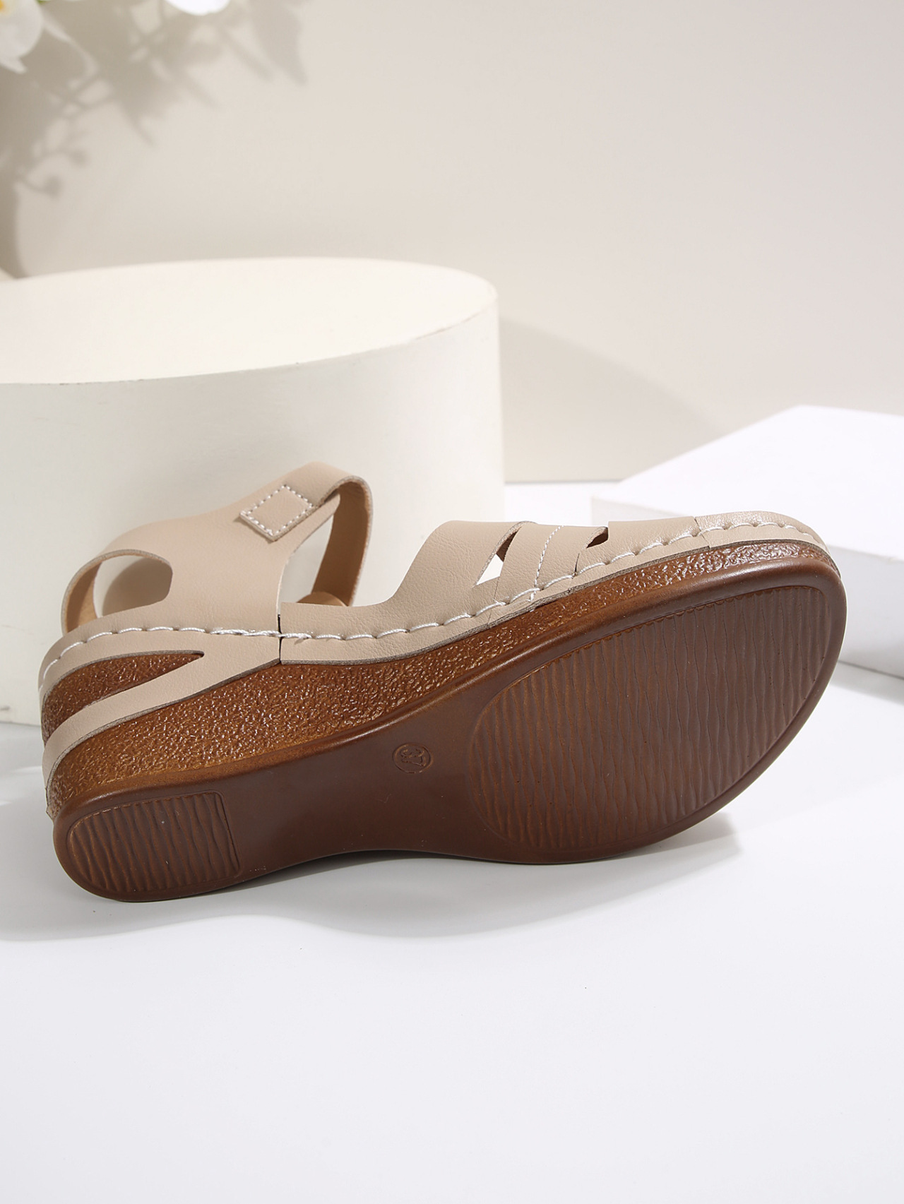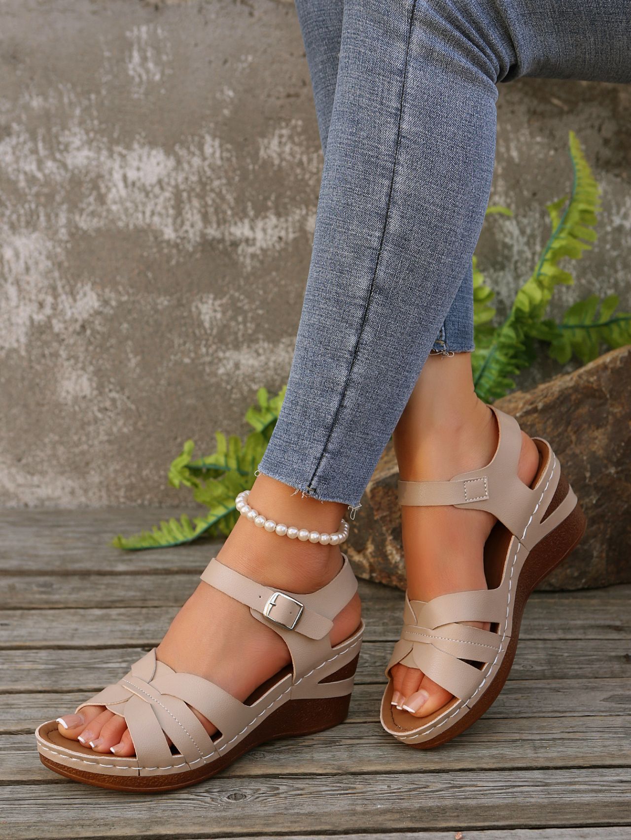 여성을위한 캐주얼 웨지 샌들 2025 여름 새로운 대외 무역 대형 두꺼운 밑창 물고기 입 로마 벨크로 샌들 여성을위한스토어 가기