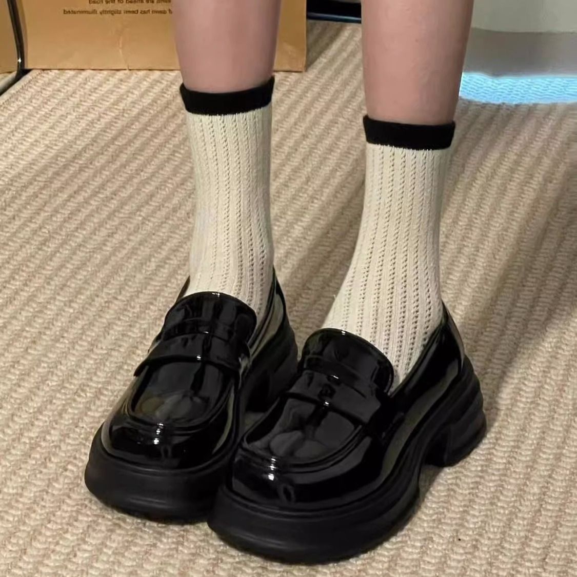 2025년 봄 여성을 위한 블랙 영국식 작은 가죽 신발 새로운 일본식 jk 두꺼운 밑창 게으른 신발 두꺼운 굽 미끄럼 방지 로퍼스토어 가기